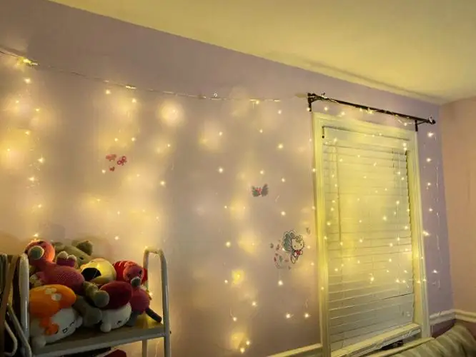 Гирлянда яркая, нарядная, светит в нескольких режимах, выглядит здорово, очень украсила комнату.