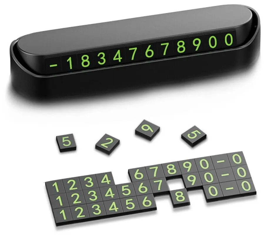 Автовизитка с наборным номером контактного телефона. Парковочная автовизитка это оригинальное, стильное и удобное предоставление контактной информации. Табличку с номером телефона легко устанавливать на приборную панель автомобиля с помощью двухстороннего скотча 3 мм. Скотч не портит пластик и не оставляет на нем следов. Вы также можете не фиксировать автовизитку на скотч, а установить ее на время Вашего отсутствия, а по возвращению просто убрать. Отсек с цифрами автовизитки открывается / закрывается нажатием на заднюю / переднюю часть корпуса верхнего отсека автовизитки. Легко и быстро собирается номер телефона из набора магнитных цифр, который всегда можно поменять.