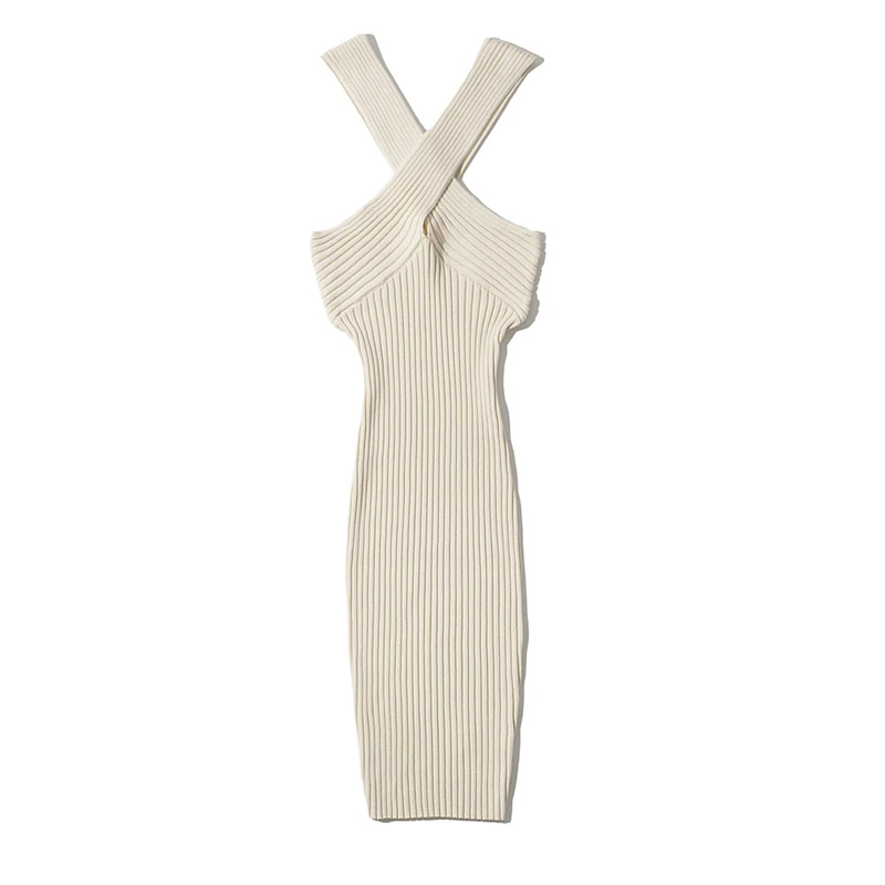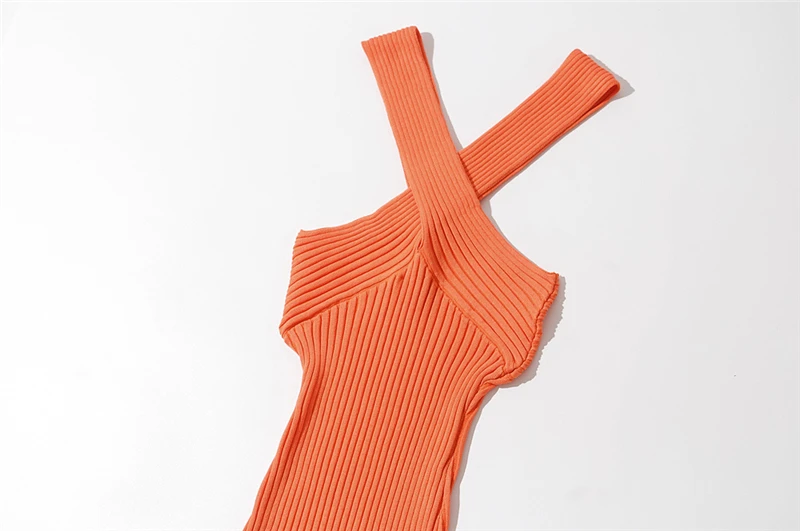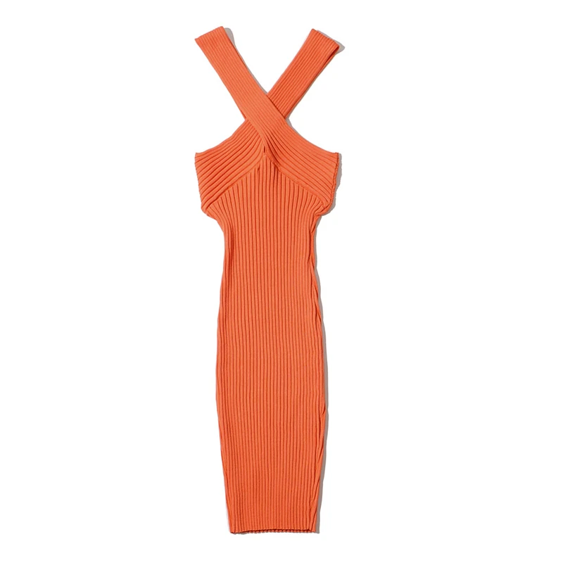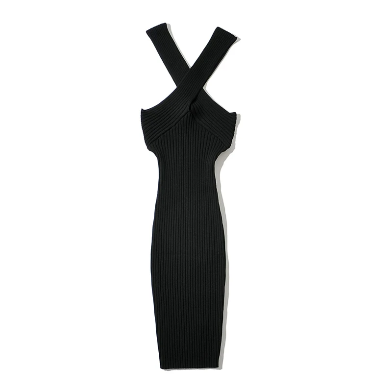 LUNDUNSHIJIA 2021 летнее женское сексуальное вязаное платье с перекрестными лямками через шею, модные женские однотонные платья без рукавов, платья 4 цветов