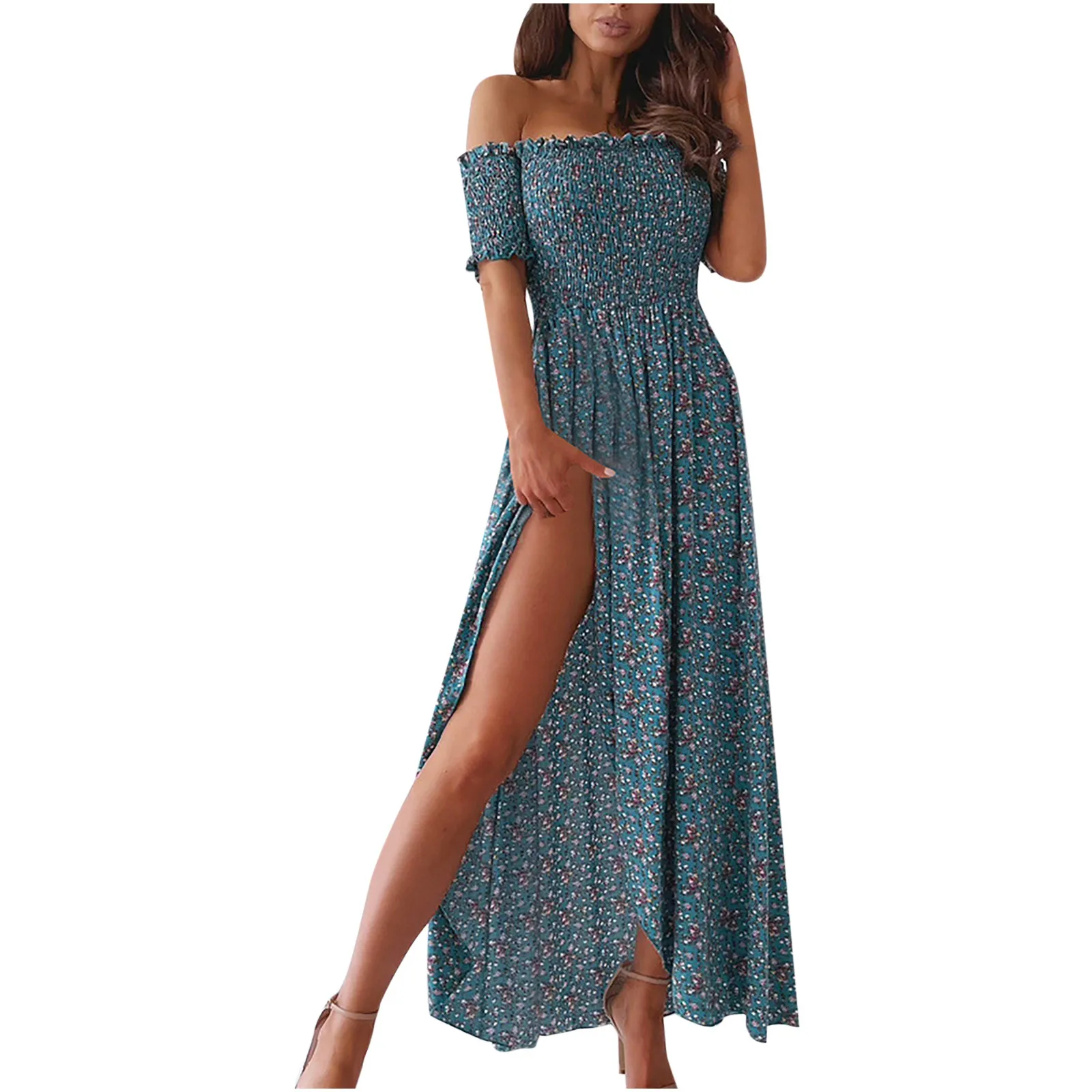 Женское платье с коротким рукавом, длиной до щиколотки, с принтом, с разрезом