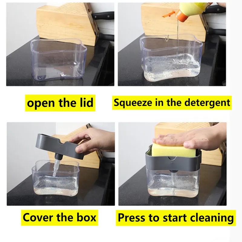 Диспенсер для мыла с держателем губки, контейнер для чистки жидкости, Ручной пресс, инструмент для чистки кухни