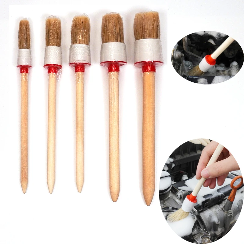 Щетка для чистки деталей бокового шва автомобиля, щетка для очистки воздуховыпускного отверстия двигателя, кондиционера, чистящая круглая головка, набор мягких деревянных щеток