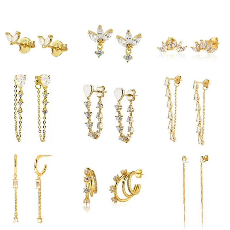 Женские серьги-гвоздики из серебра 925 пробы с белым цирконом
