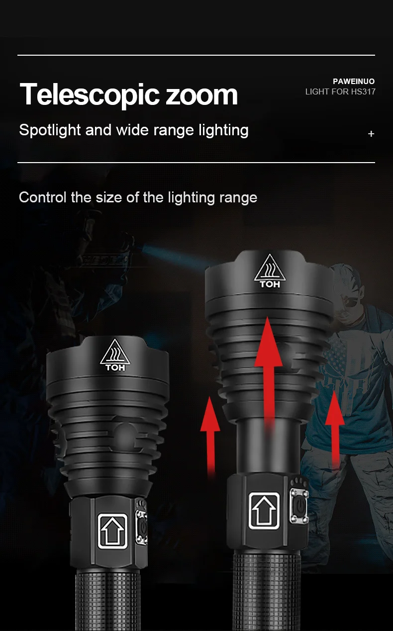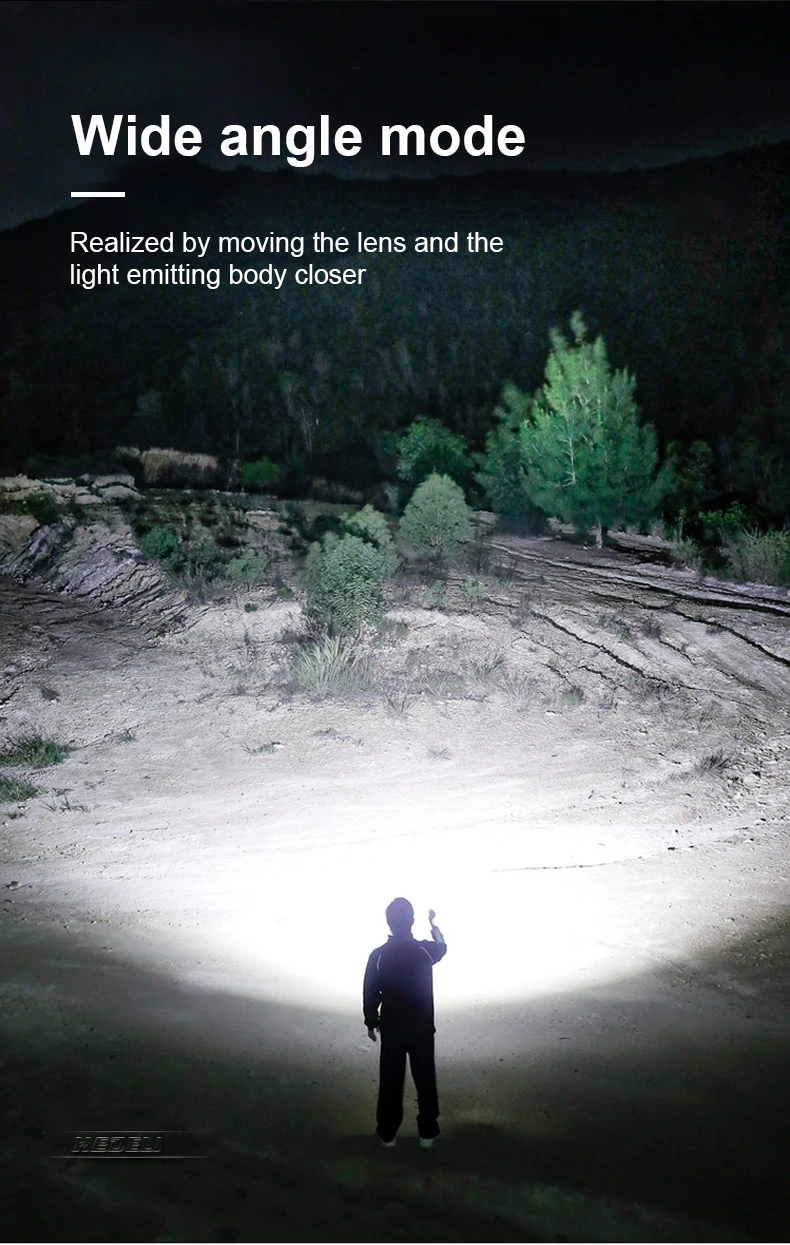 Новейший светодиодный светильник XHP100 ярче, чем светодиодный XHP160, и диапазон освещения может достигать до 1500 м, освещая ночь и наслаждаясь светильник. Это фонарик, подходящий для охоты, кемпинга и других любителей ночного отдыха. Это также идеальный уличный фонарик для ночного чтения, путешествий на открытом воздухе, приключений и ночной работы.