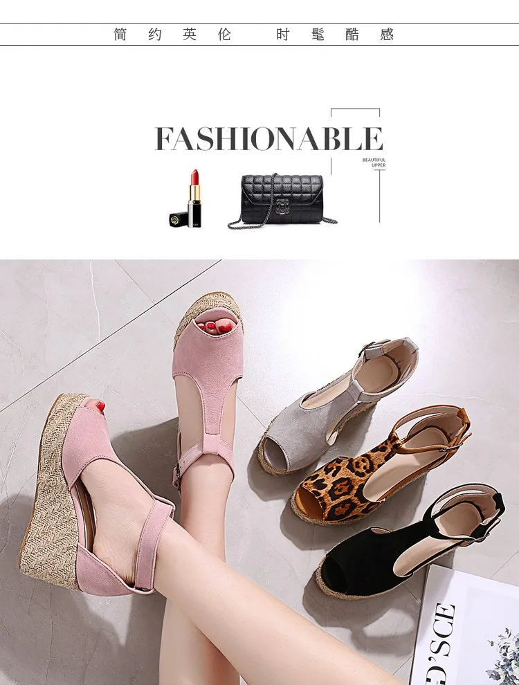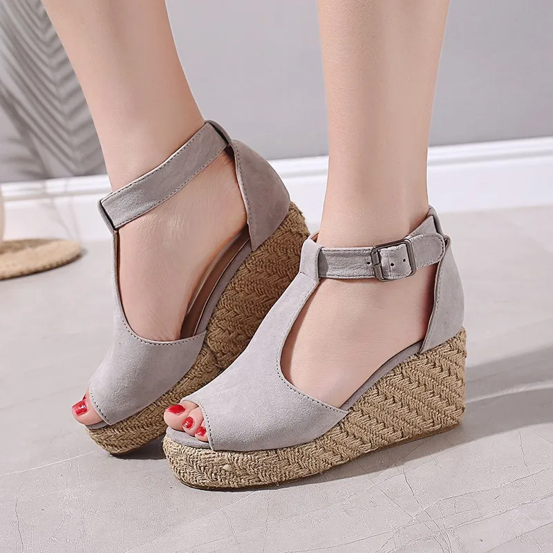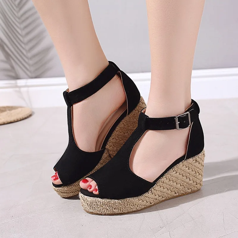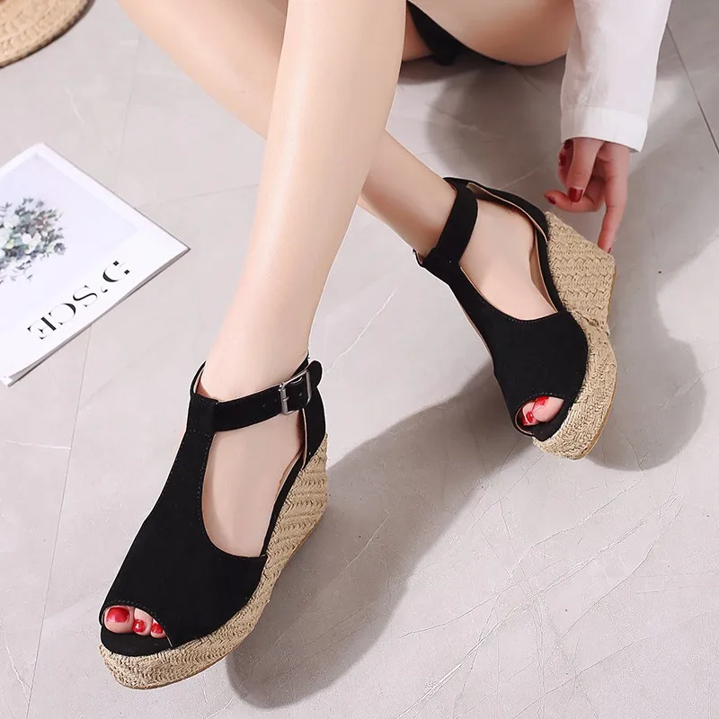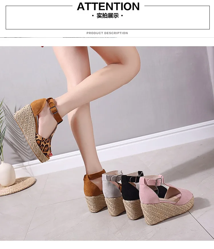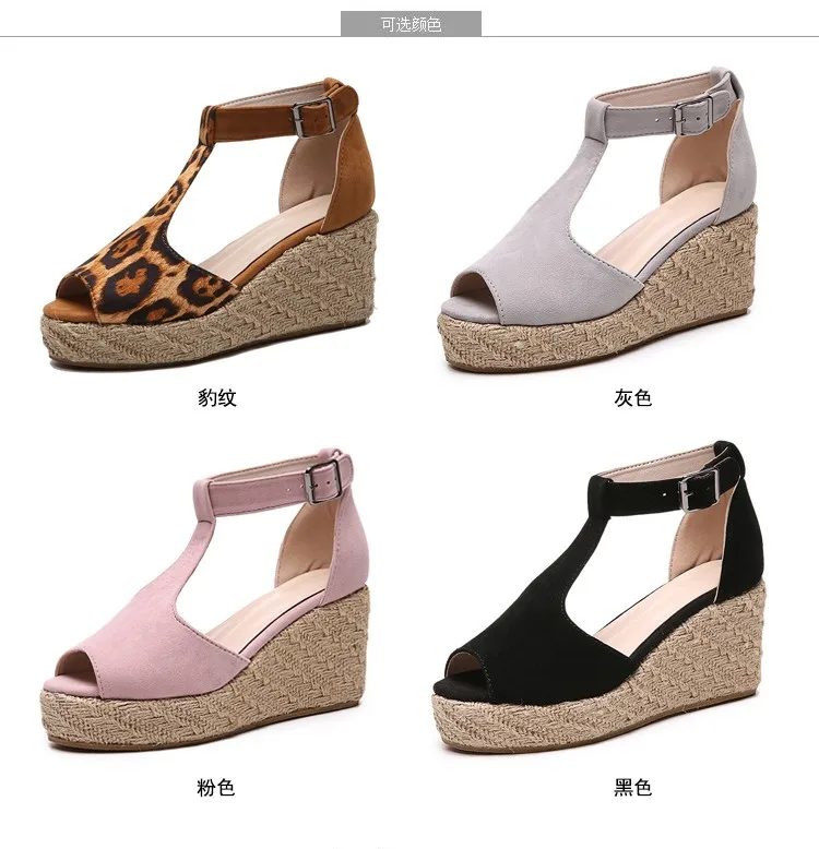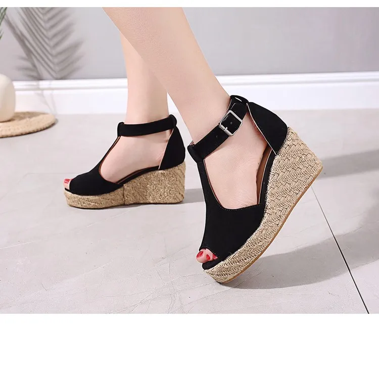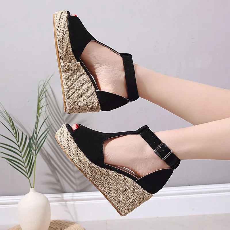 Босоножки женские на танкетке, винтажные соломенные сандалии на тол...