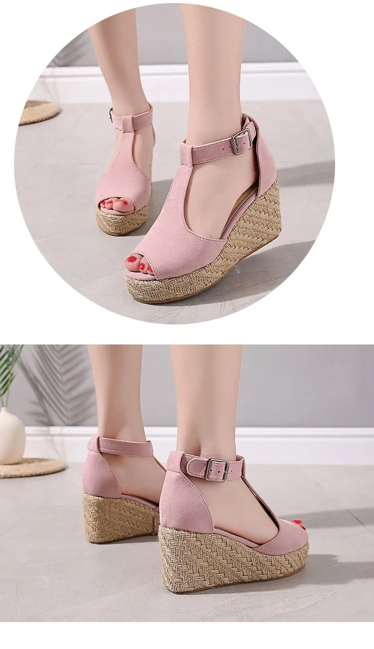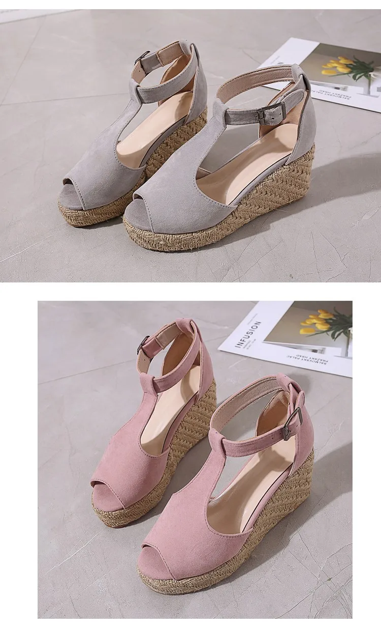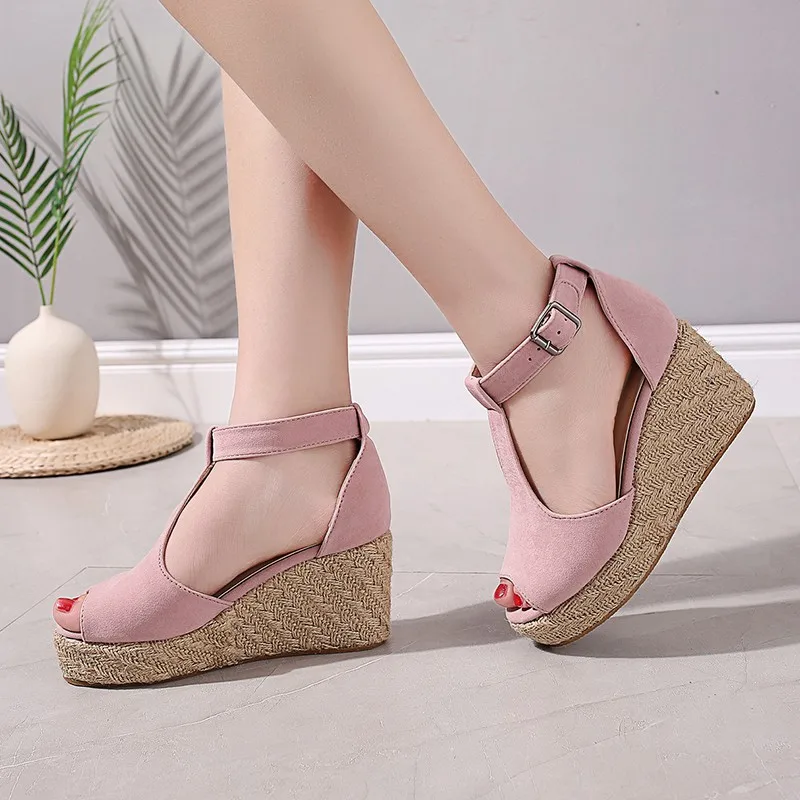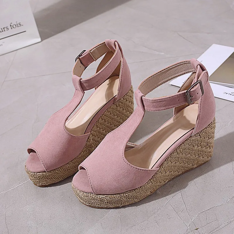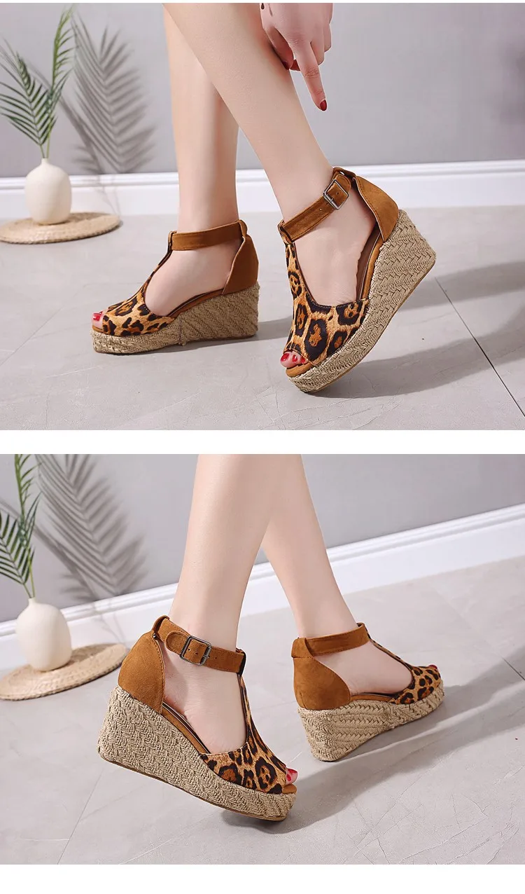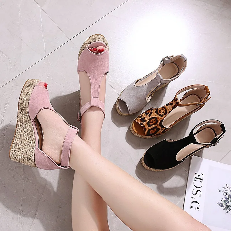 Босоножки женские на танкетке, винтажные соломенные сандалии на тол...