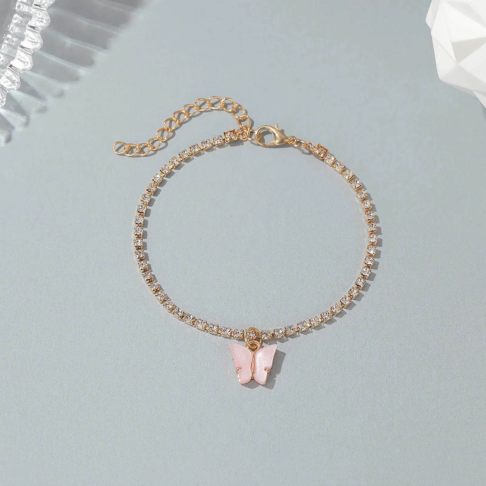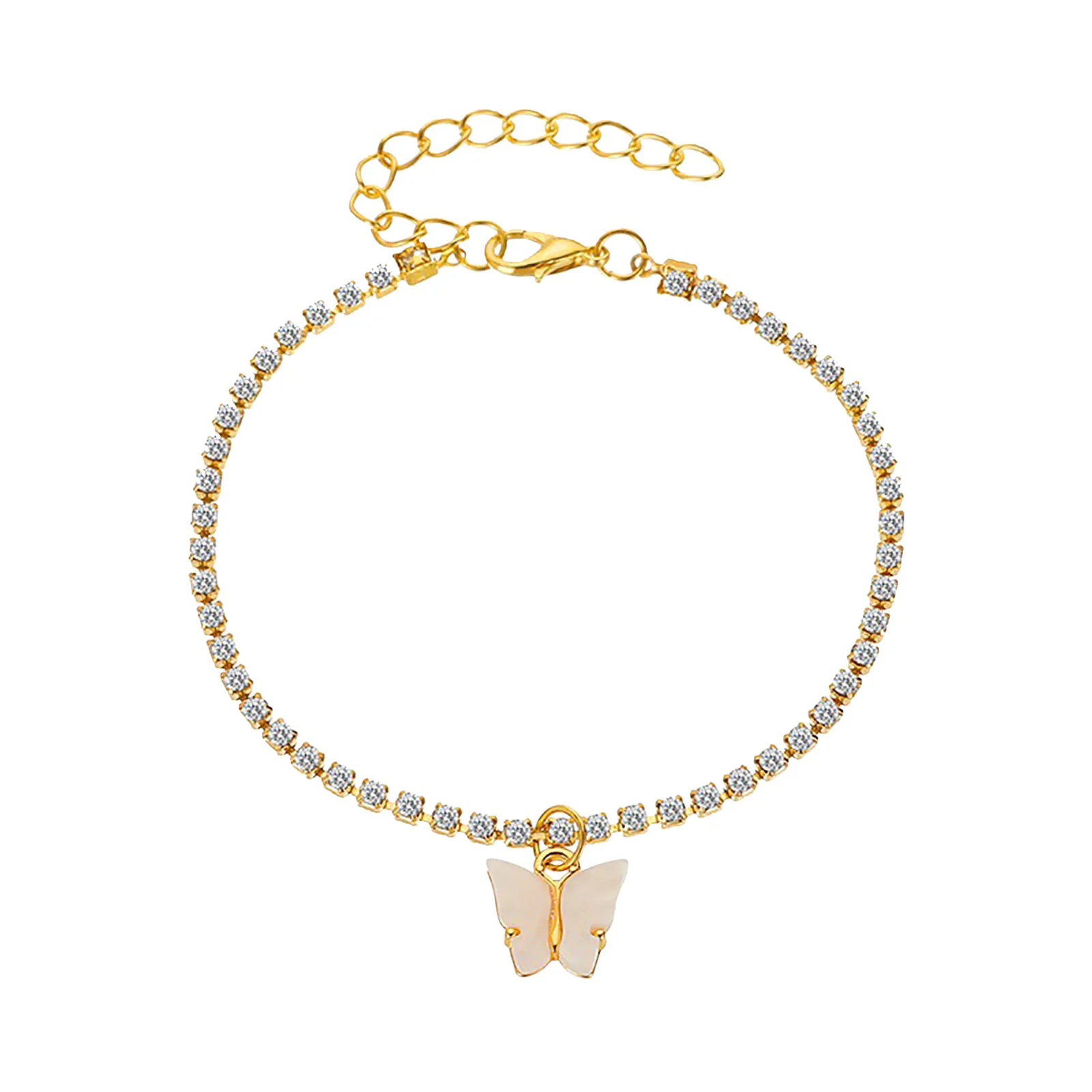 Женский ножной браслет в стиле бохо, ножная Цепочка с кристаллами и бабочками для тенниса, пляжные аксессуары, Ювелирное Украшение для лета L3