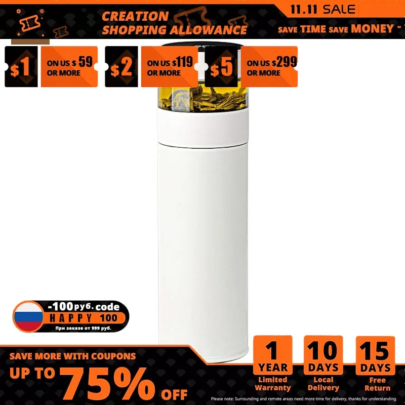 Бутылка для чая и воды Youpin, из нержавеющей стали, 400 мл