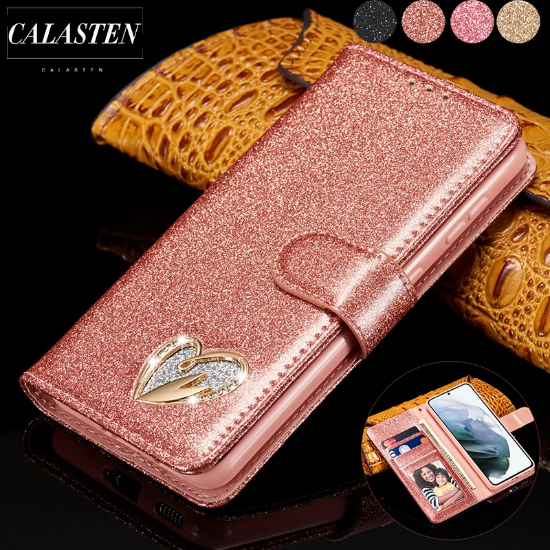 Кожаный чехол-книжка с блестками для Samsung Galaxy S21 Ultra S20 F...