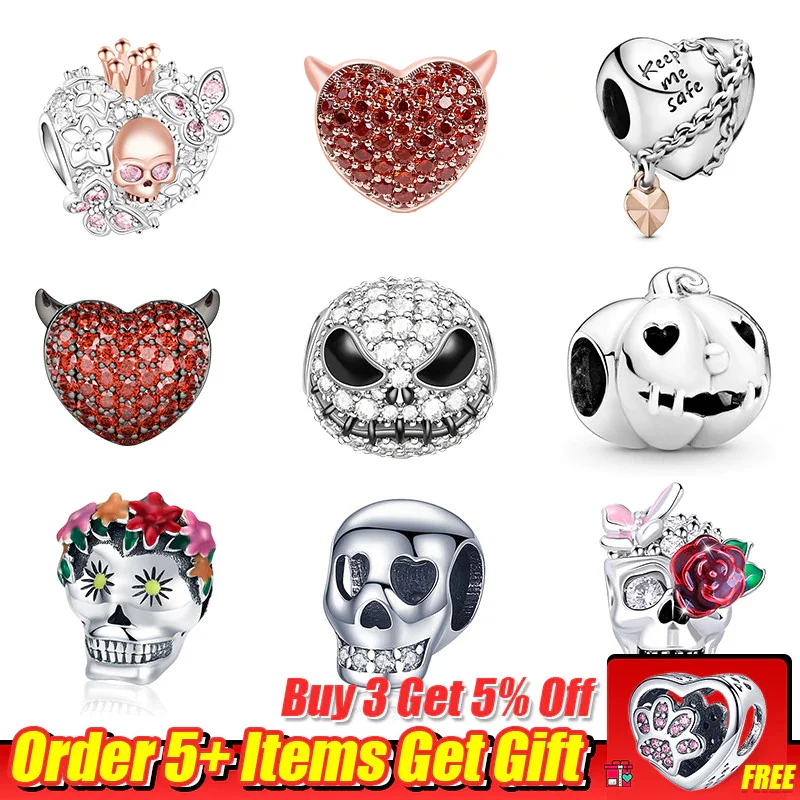 LaMenars, новое серебряное покрытие, Джек, череп с цветком, черный огонь, дракон, подвески для браслетов и ожерелий Pandora