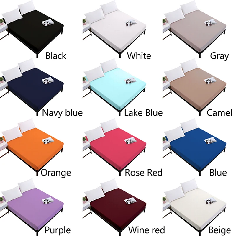 Простыня-наматрасник 1 шт., постельное белье сплошного цвета, простыня с резинкой, двуспальная кровать