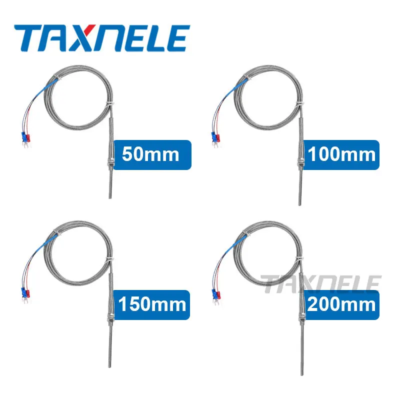 Тип: K J Pt100 Диапазон измерения: K:0-600 °C J:0-600 °C Pt100:-200 ~ 450 °C Длина кабеля: 2 метра Длина зонда: 50 мм, 100 мм, 150 мм, 200 мм Диаметр зонда: 5 мм Резьба: М8 с гайкой Клемма: вилки с изоляцией 2/3 Материал зонда: нержавеющая сталь Хорошее качество провода, высокая термостойкость, высокая плотность Дисплей продукта
