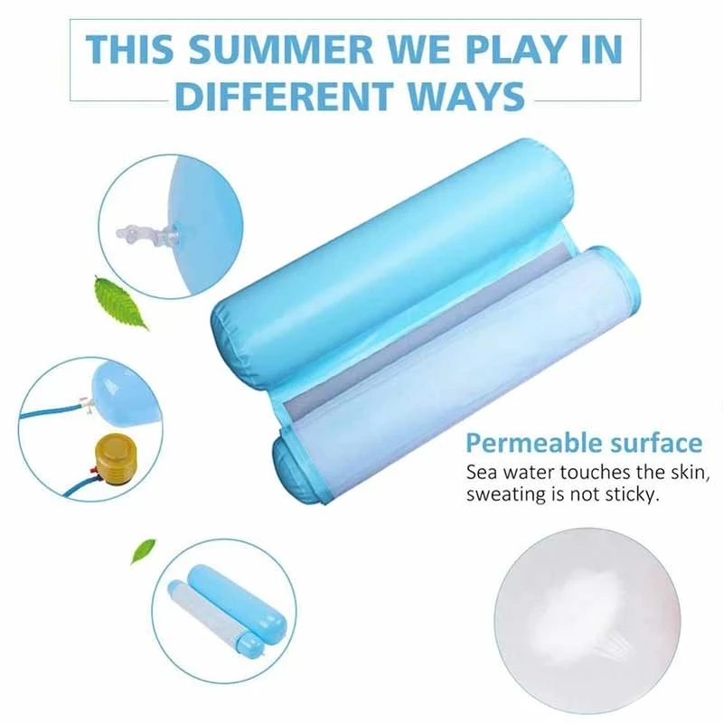 1. Удобный и прочный: Этот надувной гамак изготовлен из высококачественного экологически чистого ПВХ. Мягкий и удобный сетчатый гамак с надувными подушками на обоих концах. Эргономичный дизайн обеспечивает большую поддержку и изобилие комфорта, удерживая пловцов, отдыхающих в бассейне в течение нескольких часов. Он прочный, мягкий и быстро сохнет.2. Простота установки и переноски: Этот водный гамак-шезлонг складной и компактный, вы можете быстро и легко надувать и сдувать водный гамак, И легко свернуть его для хранения и удобно брать на детскую площадку, сад, газон, пляж, тренажерный зал, в путешествие.3. 4 в 1 многоцелевой надувной гамак: Уникальные 4-в-1 Особенности воды, поплавки для бассейна могут использоваться как гамаки, шезлонги, водители и спортивные седла, идеальные водные поплавки, который дает вам различный опыт. Вы получите полное удовольствие от нахождения в воде.5. Прохладное лето для вас: прохладная сетчатая ткань посередине. Надувные плоты позволяют середине вашего тела оставаться прохладным, замачивая в воде, сохраняя голову и колено на плаву. Сохраняйте прохладу, замачивая в воде, сохраняя голову и колено на плаву. Вы можете плавать на воде, наслаждаться солнечным светом, чувствовать себя в прохладном мире, наслаждаться и отдыхать в этот прекрасный момент.