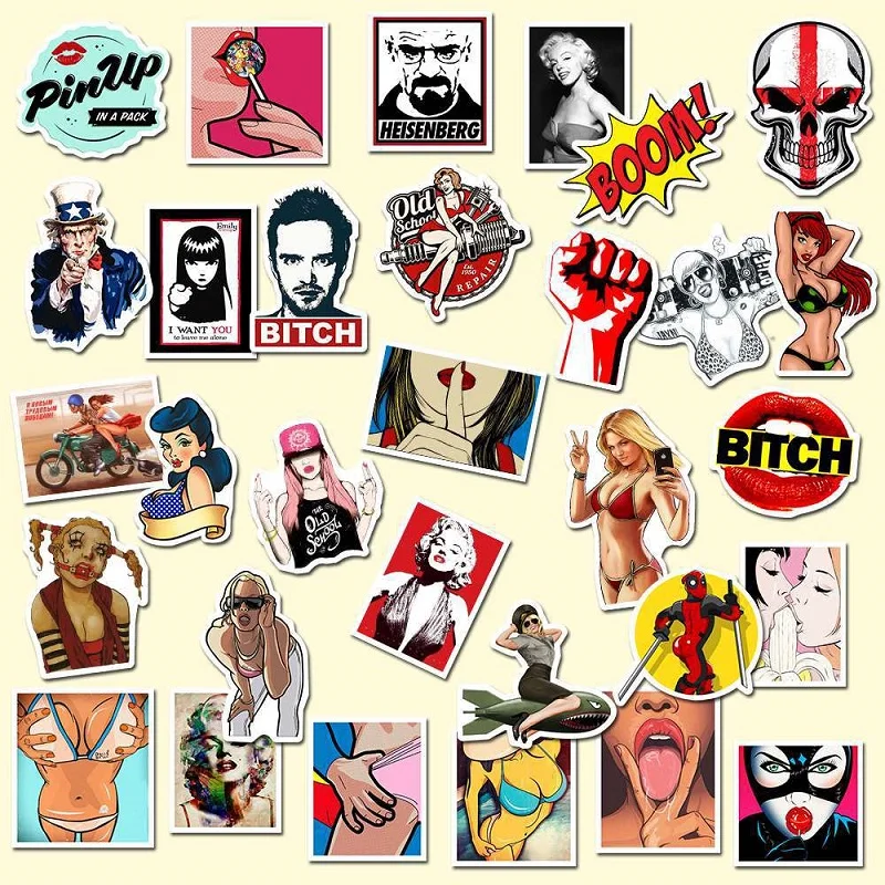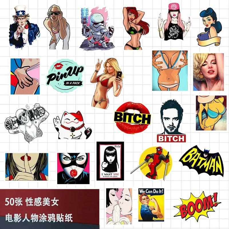 50 шт. стайлинговые ПВХ водонепроницаемые вульгарные сексуальные красивые наклейки для девушек Macbook Pro мотоцикл ноутбук багаж игрушка ПК бутылка