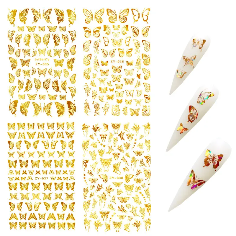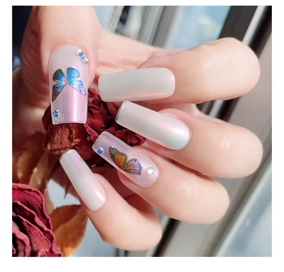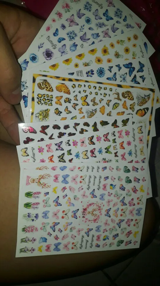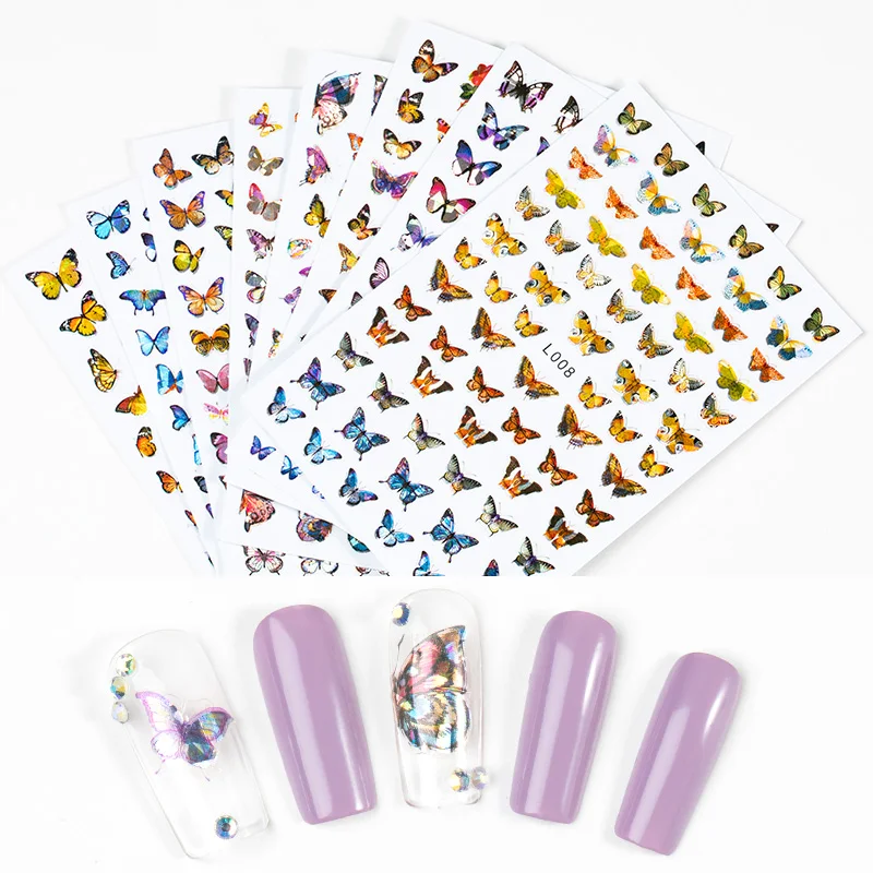 Наклейки для ногтей, 1 шт., голубые, розовые, красочные, с бабочкой...