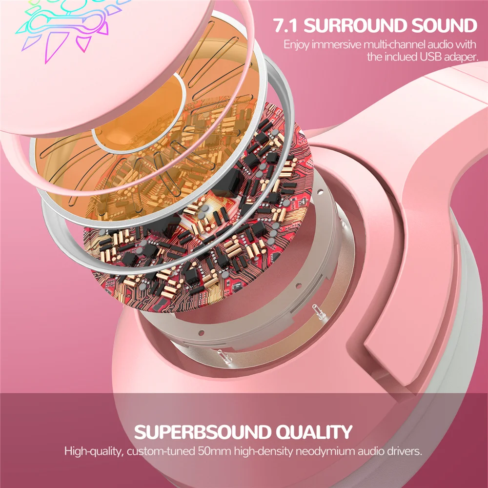 Проводные Игровые наушники ONIKUMA K9 casque 3,5 мм, 3D стерео с микрофоном и светодиодсветильник кой для ПК, ноутбука, PS4, Xbox One, розовые наушники с кошачьими ушками