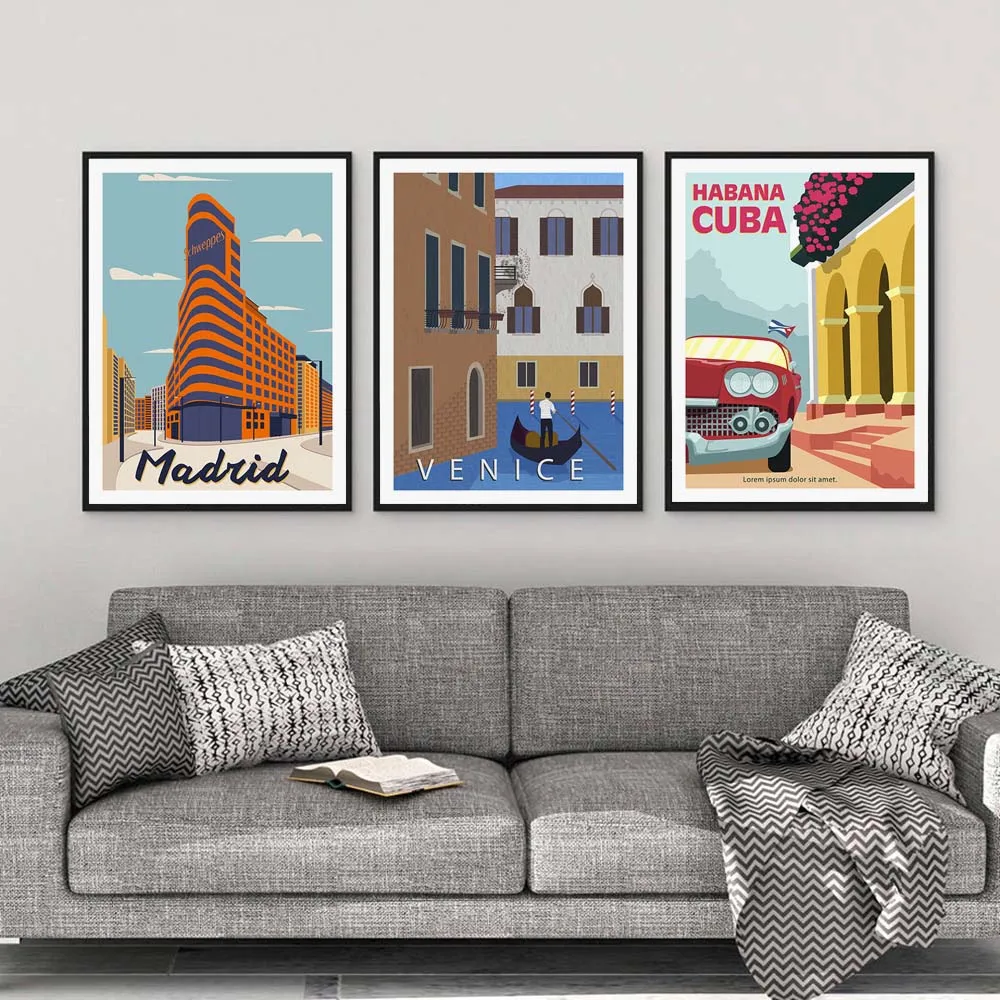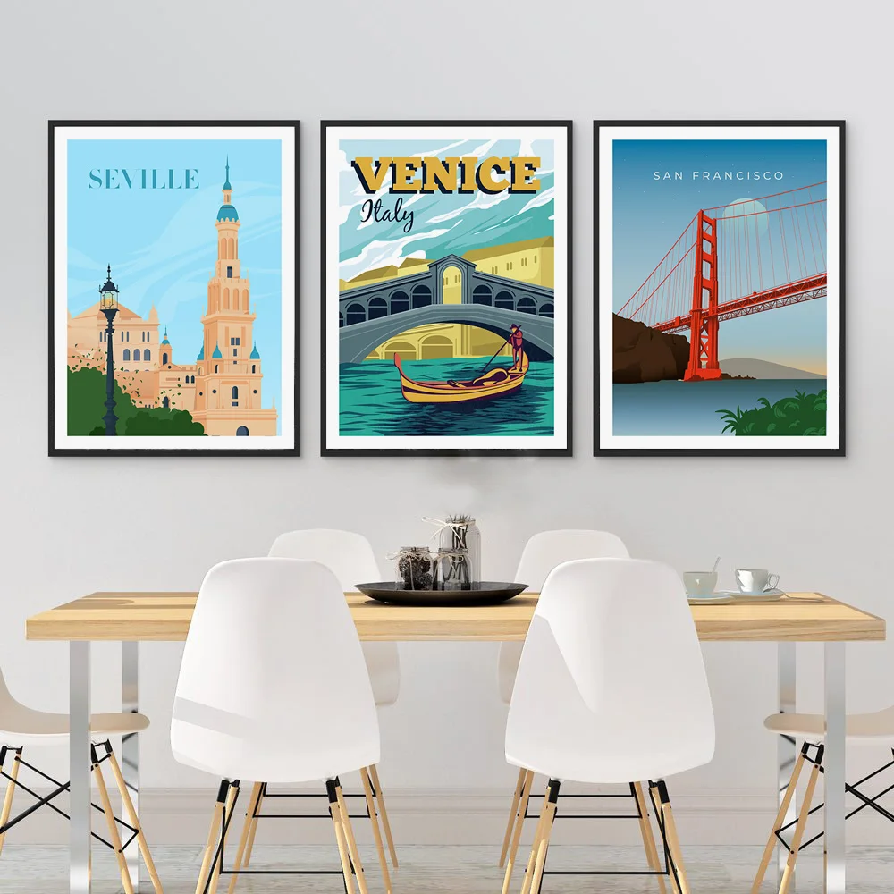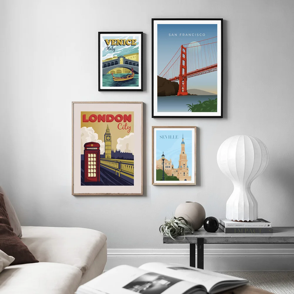Сан-Франциско Севилья Лондон шаблон городской ландшафт Искусство Холст Живопись скандинавские принты декор гостиной