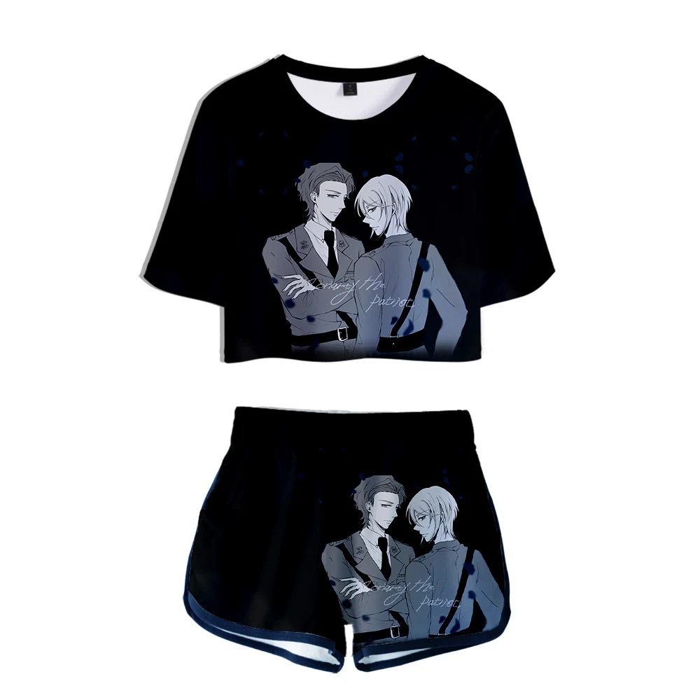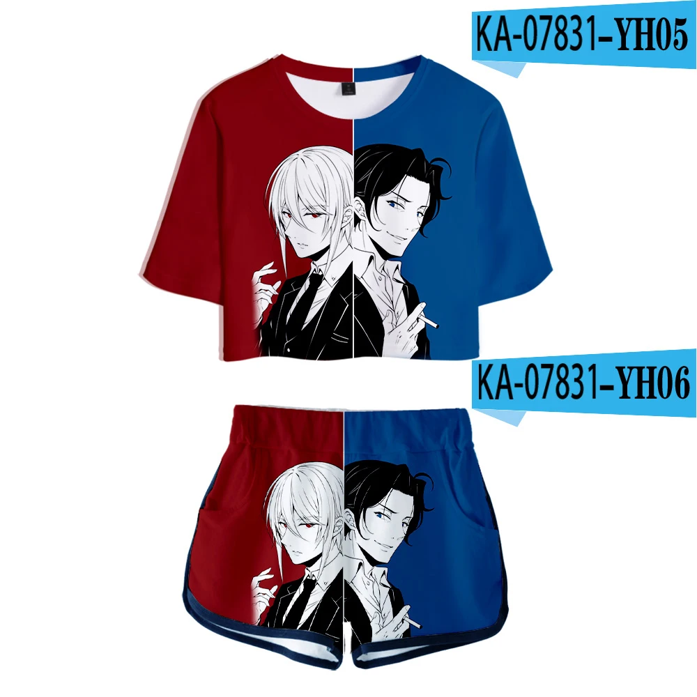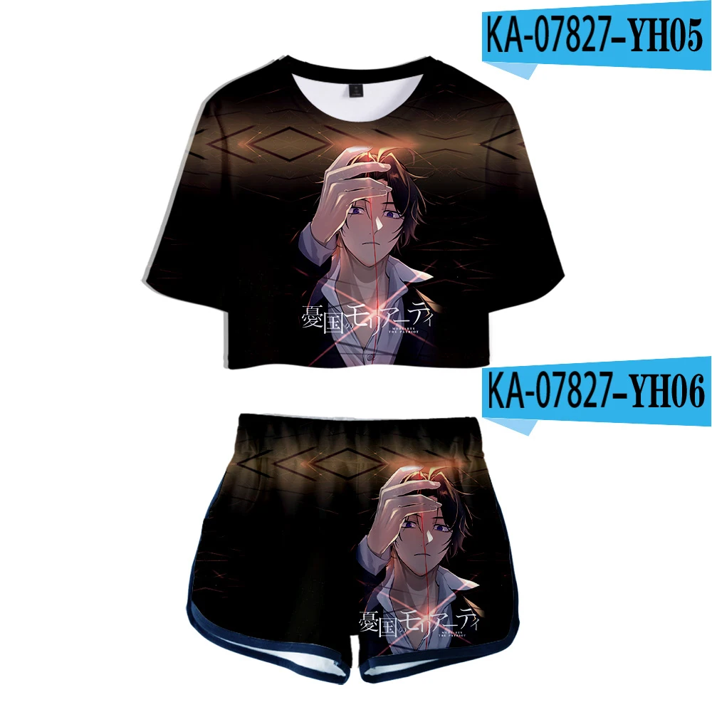 Kawaii японский аниме Мориарти Патриот 3D комплект из двух частей Женская Повседневная футболка + шорты одежда спортивные комплекты Com трендовая одежда