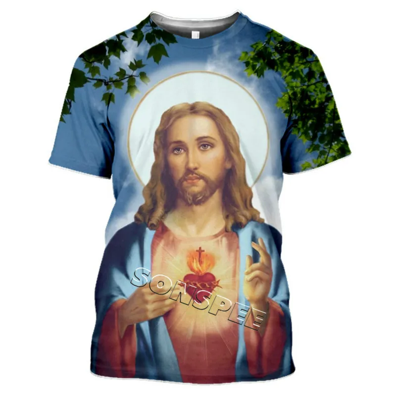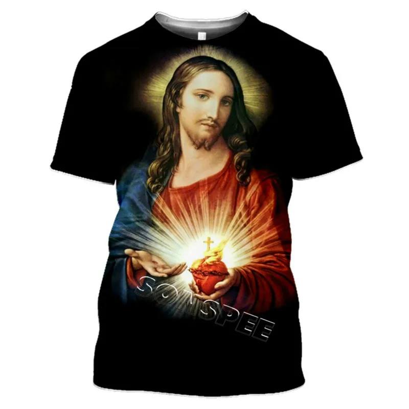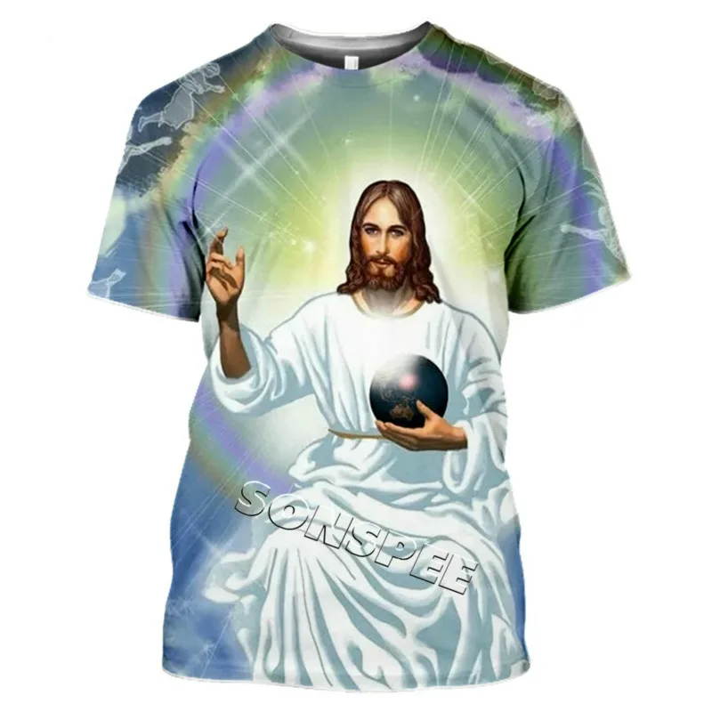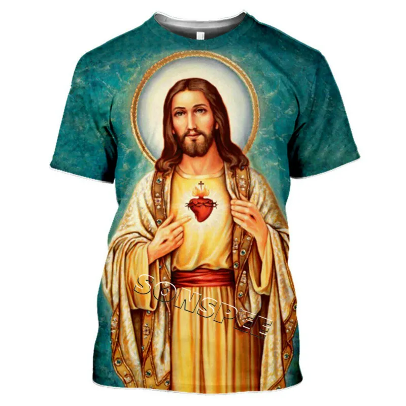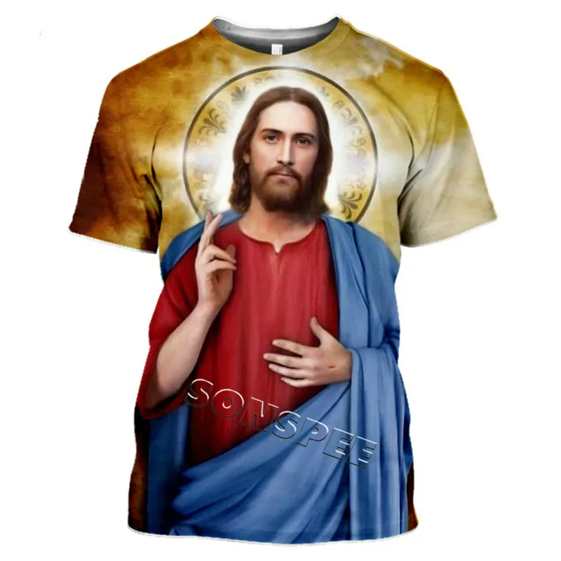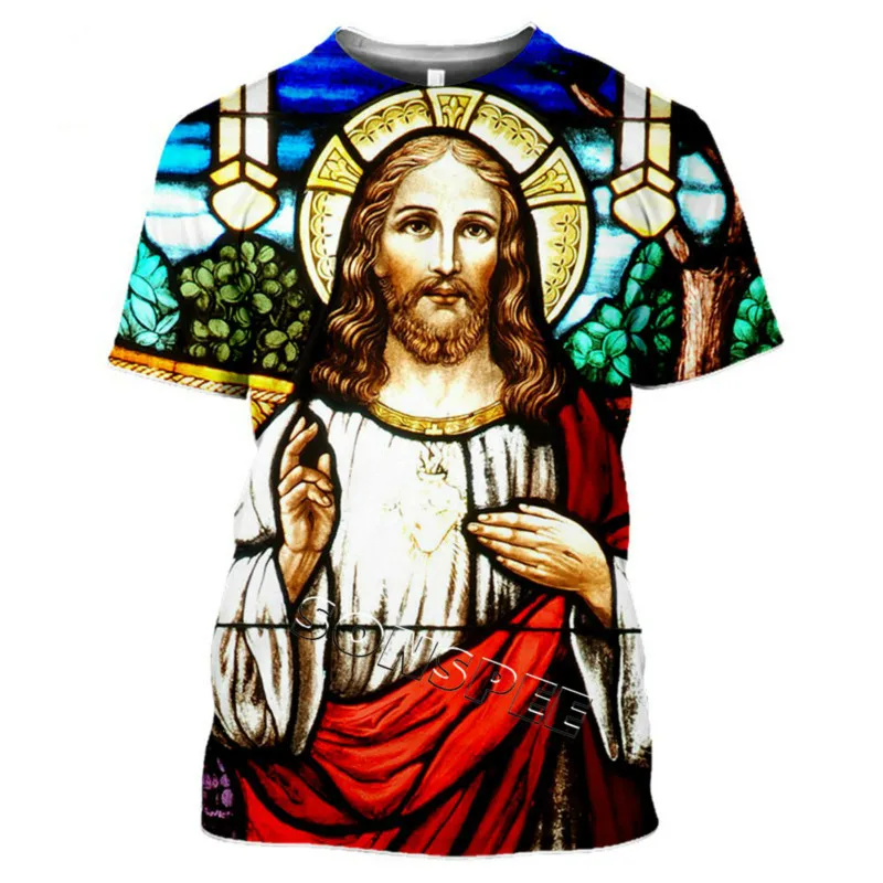 Мужская и женская футболка 2021Summe с 3D принтом Иисуса и Бога, св...