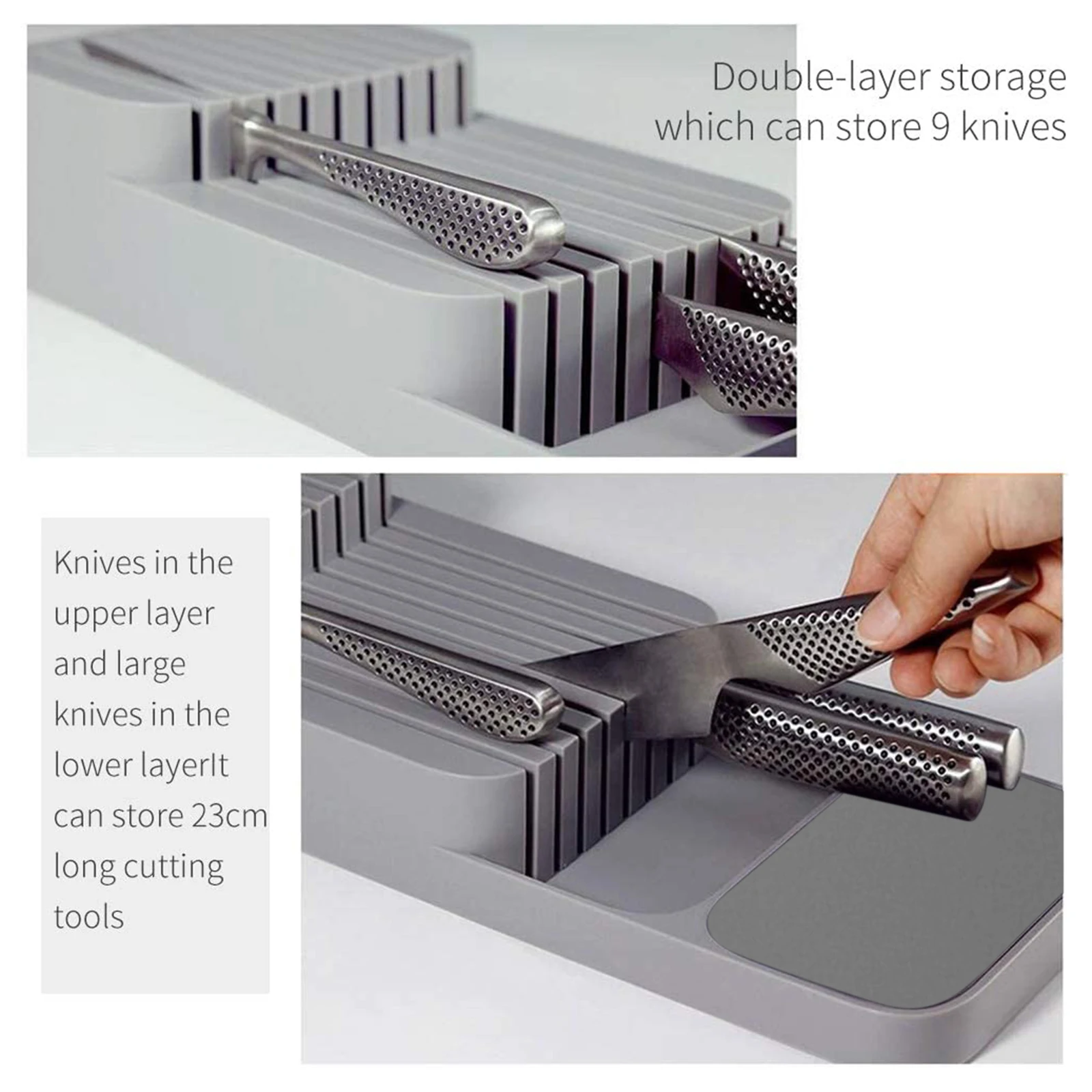 Органайзер для блока ножей, подставка для хранения кухонных ножей в ящике, вмещает 9 ножей, 2-уровневый держатель для ножей