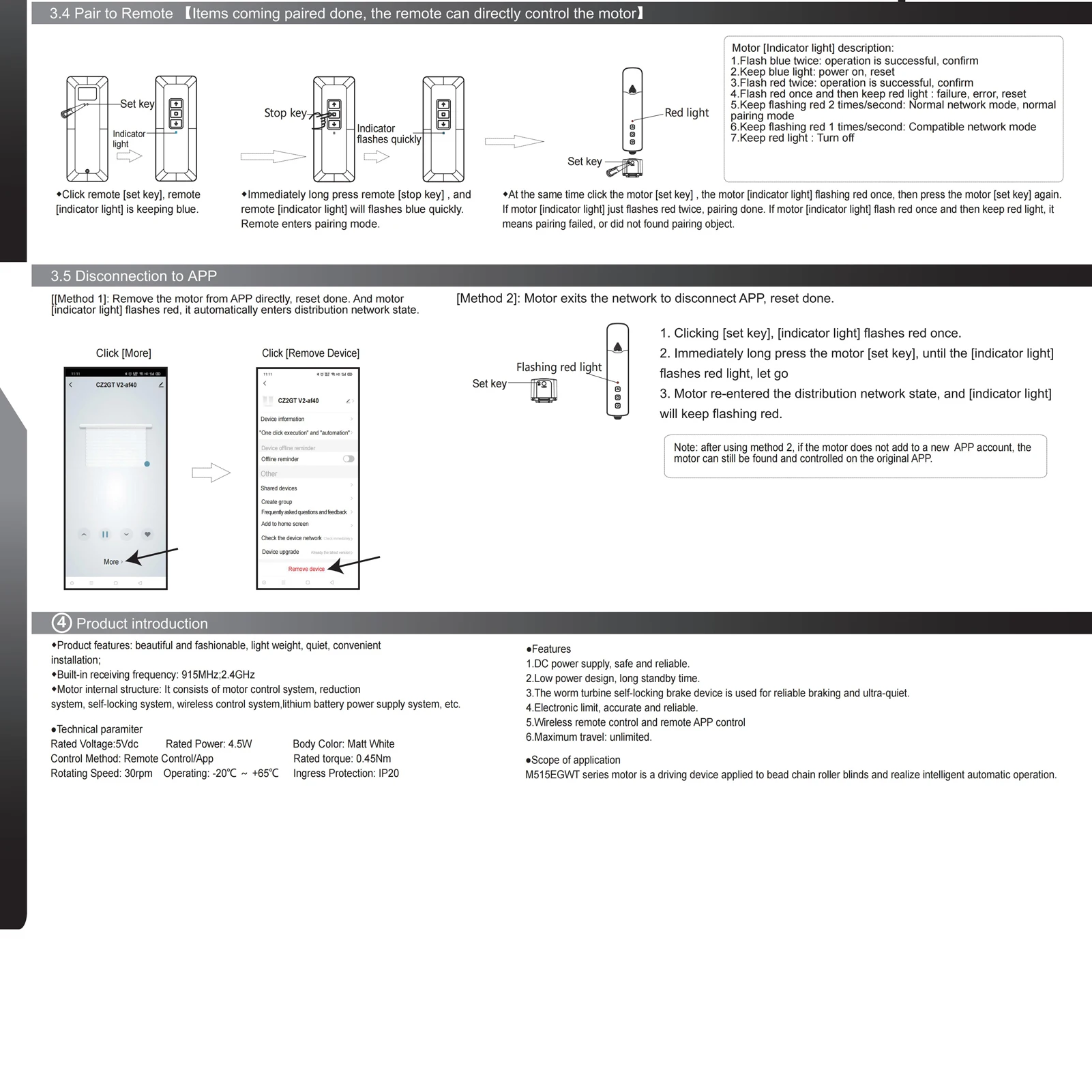 Этот умный Потяните шарик мотор полезен для вас, чтобы использовать в вашем доме или офисе. Вам больше не нужно вручную поднимать занавеску, иногда ваши руки держат вещи, это не удобно для вас, чтобы управлять занавеской. С помощью этого продукта вы можете открыть или закрыть шторы через мобильный телефон или даже ваш голос. Это очень легко для вас, чтобы управлять им, приходите и попробуйте.Особенности:Когда вы находитесь вдали от дома, с этим карнизом и приложением Tuya, вы можете управлять занавеской с помощью мобильного телефона, больше не нужно беспокоиться о том, чтобы забыть открыть или закрыть шторы вовремя.Вы можете установить свой лимит на поездки и останавливаться там, где вы хотите, и максимальное количество поездок неограничено, что позволит вам лучше использовать опыт.Червячно-турбо самоблокирующееся тормозное устройство используется для обеспечения надежного тормоза и тишины при использовании.Этот продукт является двигателем для штор прямого тока, который является безопасным и надежным.Голосовое управление: с этим шторным мотором и голосовым помощником, таким как Alexa и Google Home, вы можете контролировать свой занавес своим голосом.Характеристики:Материал: АБС-пластикЦвет: белыйАккумулятор пульта дистанционного управления: 2 * cr2430 батареи (в комплекте)Тип адаптера: ЕС, Великобритания, США, Австралия (опционально)Номинальное напряжение: 12 в постоянный токНоминальная мощность: 4,5 WНоминальный крутящий момент: 0,45 нмСкорость вращения: 30 об/минРабочая температура: -20 ℃ ~ + 65 ℃Встроенный частота приема: 915 МГц, 2,4 ГГцРазмер штор двигателя: 180*40*34 мм/7,1*1,6 * 1.3inШторы Мотор Вес: 262 г/9,2 унцииРазмер посылка: 220*183*47 мм/8,7*7,2*1,9 дюймовВес посылка: 600 г/фунтовПримечание:Этот двигатель является приводным устройством, применяемым к бисерным цепные роликовые шторы и реализуем интеллектуальную автоматическую работу.Пожалуйста, обратитесь к руководству для подключения двигателя к приложению Tuya.Упаковочный лист:1 * мотор для штор1 * адаптер (опционально)1 * Руководство пользователя1 * пульт дистанционного управления