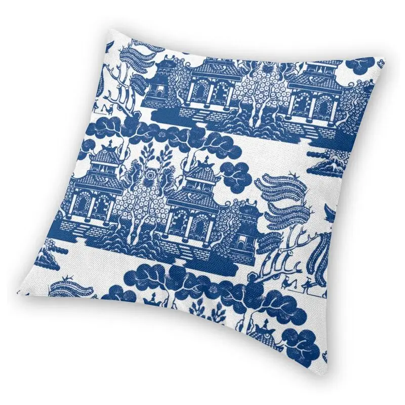 Наволочка для диванной подушки, с изображением синей ивы, белого и синего фарфора