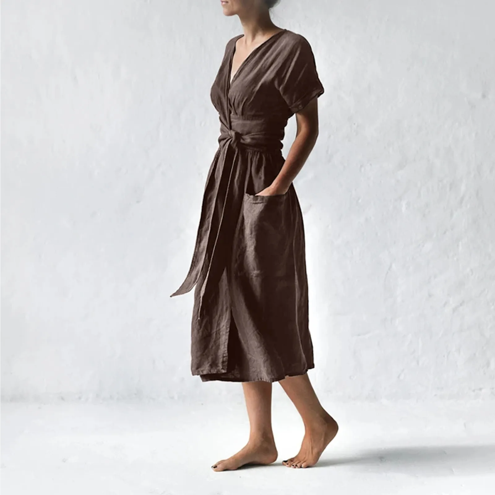 Модные элегантные черные платья макси с высокой талией, женское повседневное однотонное платье с V-образным вырезом, карманами и коротким рукавом, базовое повседневное длинное платье