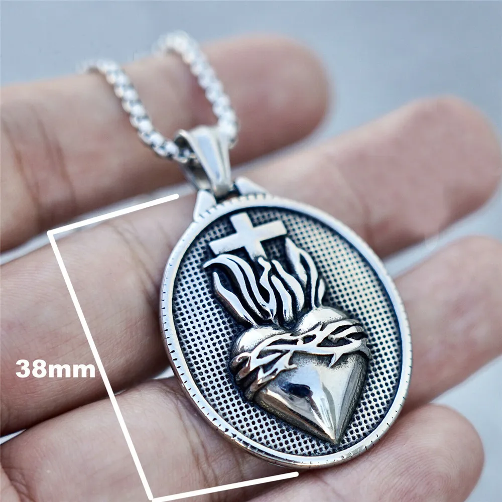 Католический медальон из нержавеющей стали, медальон, Священное Сердце Иисуса, ожерелье