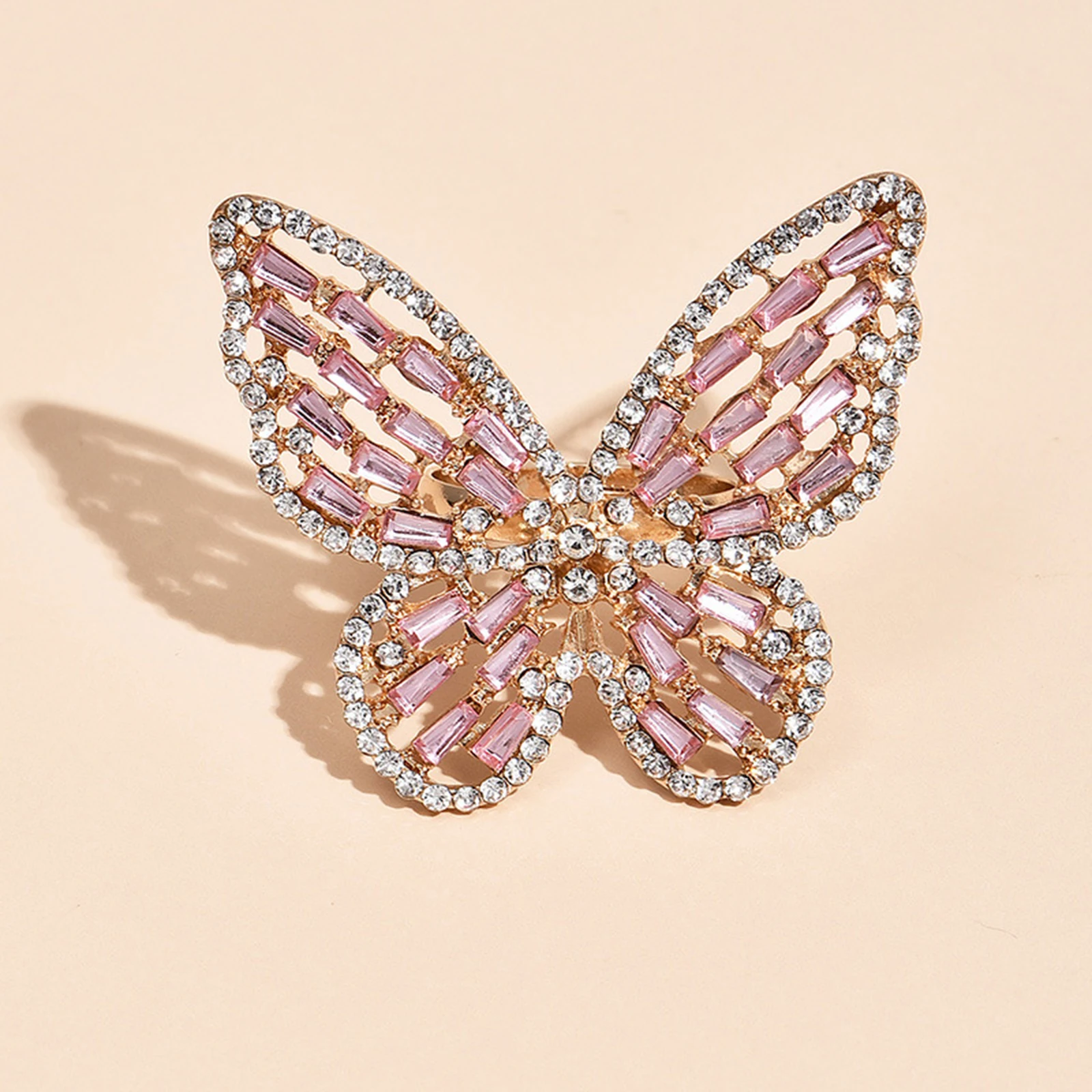 Регулируемое кольцо с розовыми и кристаллами, стразы с дизайном бабочкиОтлично подходит для повседневной носки, мило носить с платьемИзготовлен из высококачественного сплава, циркона, хрусталя с использованием гальваники и микромозаикиИзысканное мастерство и стильный внешний вид, это идеальный подарок на день матери, День Святого Валентина, свадьбу, Рождество, дни рождения, помолвку или выпускнойИдеально подходит для свадьбы, юбилея, банкета вечерние, выпускного вечера, реквизита для фотографий, праздничные украшения, подарка на день рождения, повседневного ношения, показа мод, вы хотите быть более очаровательной