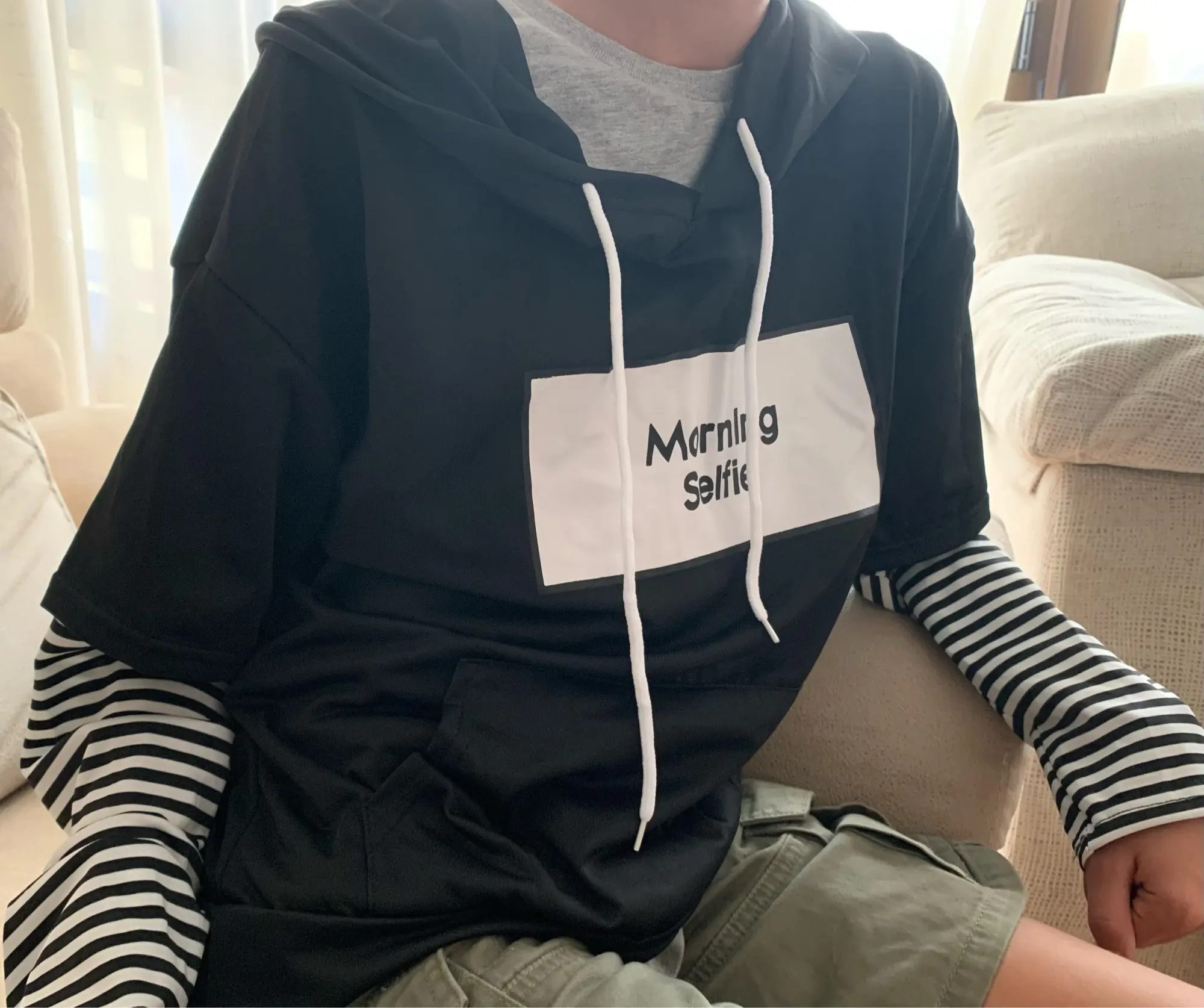 Толстовки для девочек-подростков, с буквенным принтом, в полоску, с капюшоном, с длинным рукавом, Повседневный пуловер с капюшоном, Толстовка