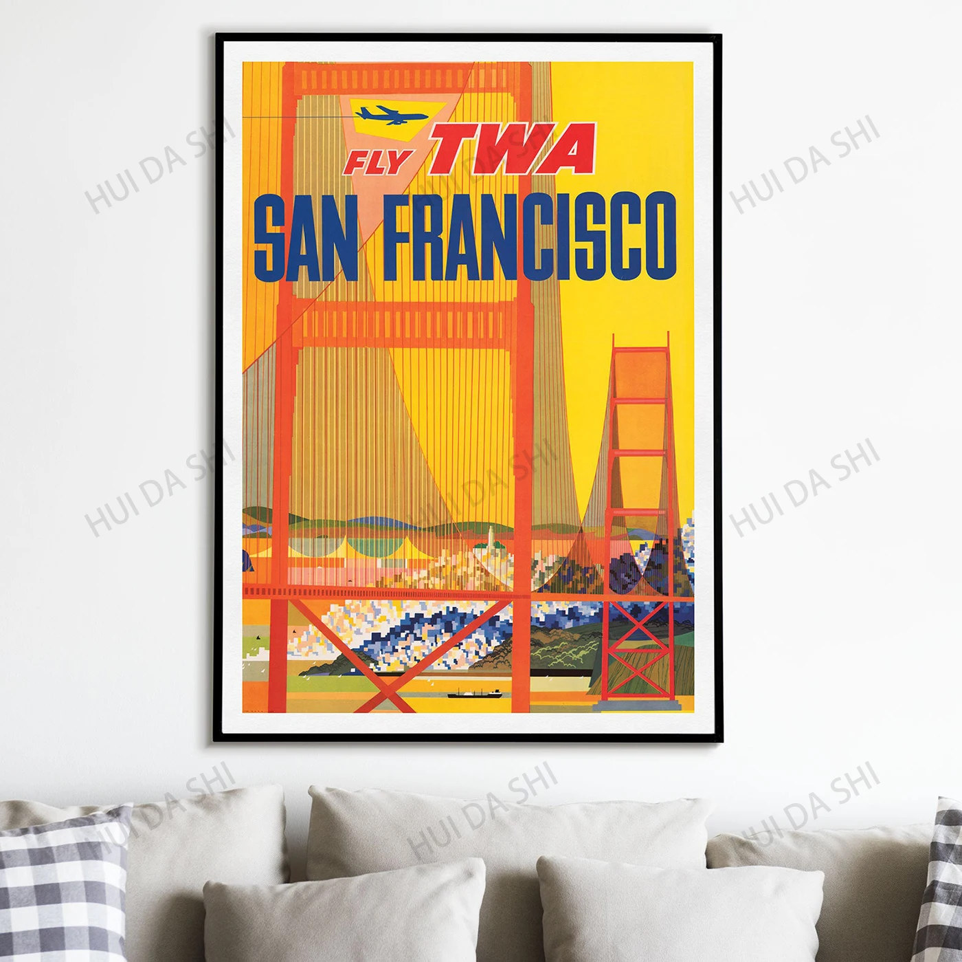 Винтажный постер для путешествий с Сан-Франциско, реклама, США, Калифорния, иллюстрация моста золотых ворот, домашний декор