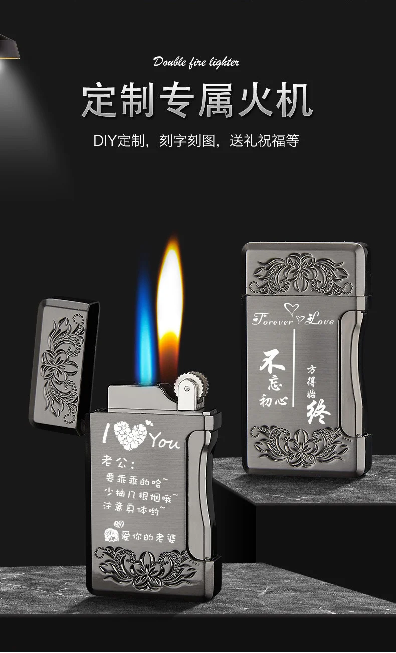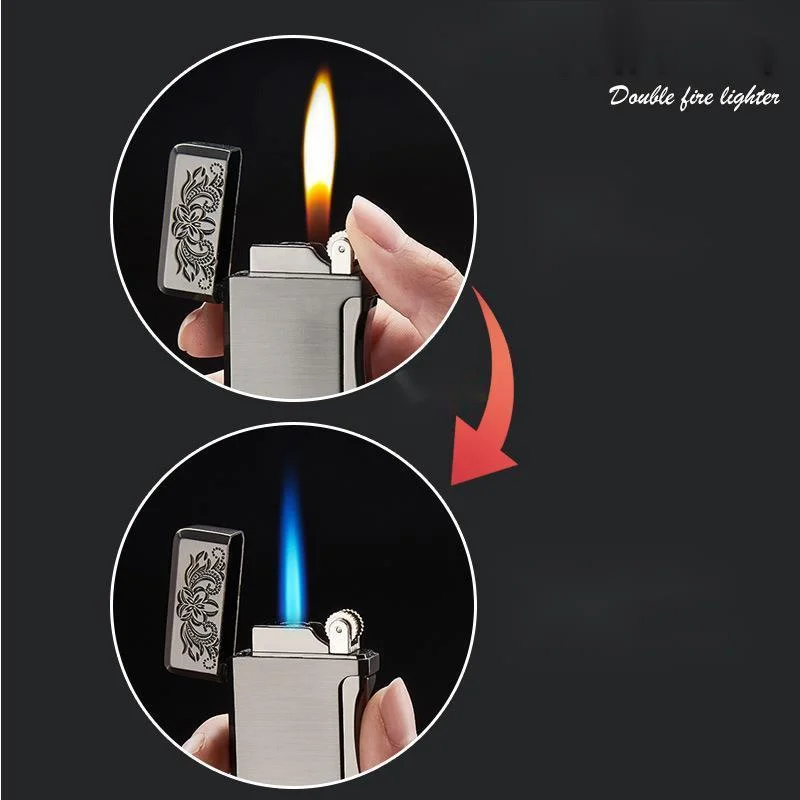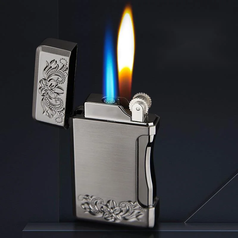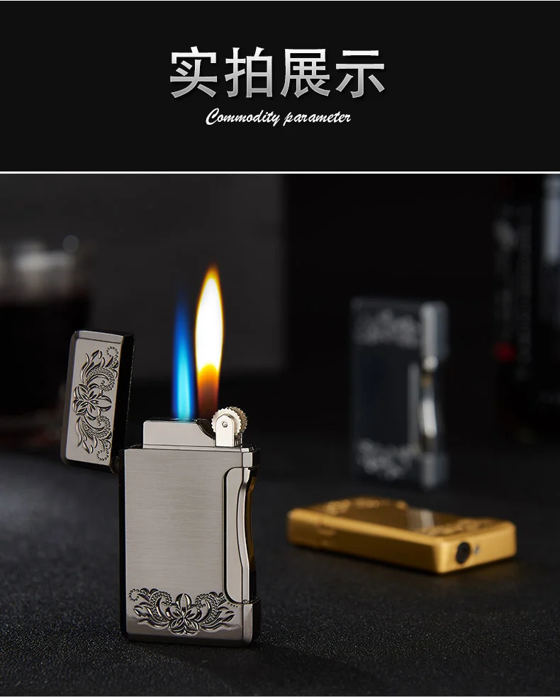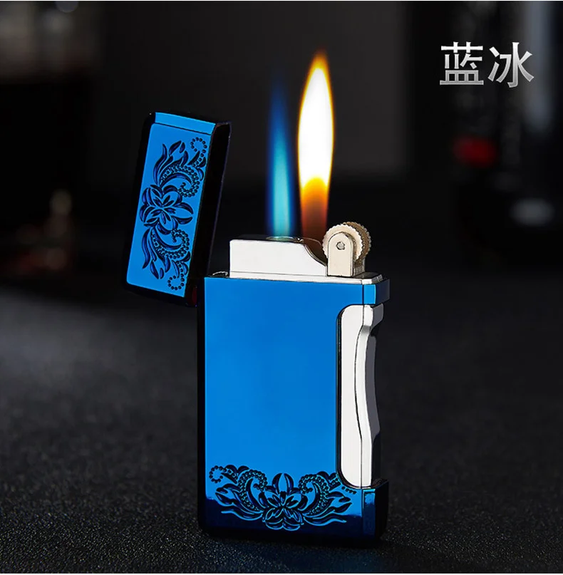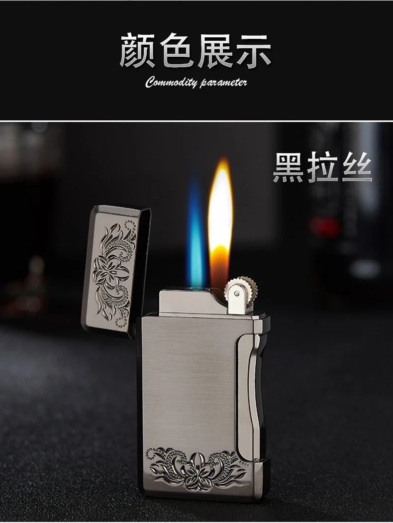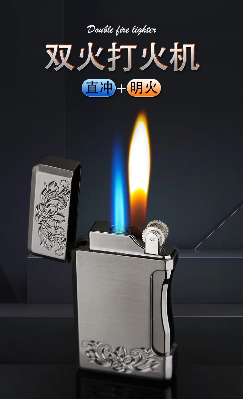 Двойная Зажигалка для резьбы, шлифовальный круг, открывающийся огонь, боковое давление, прямая Пробивка, Бутановая газовая зажигалка, индивидуальная креативная