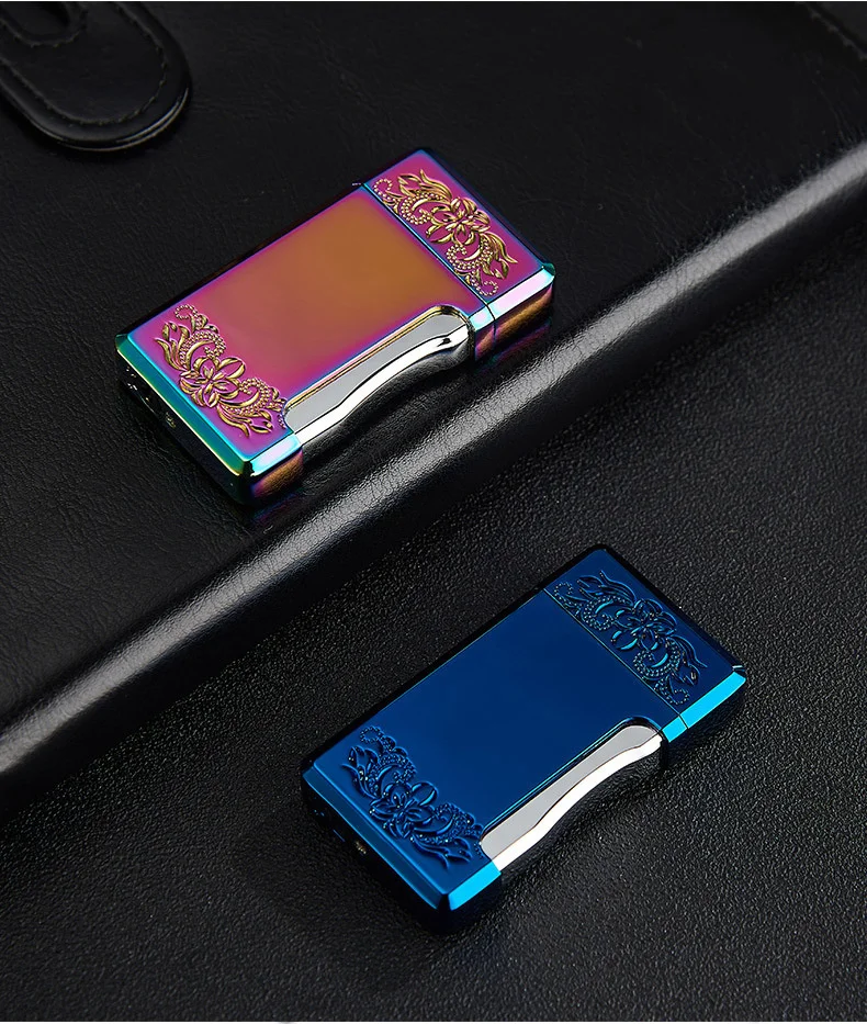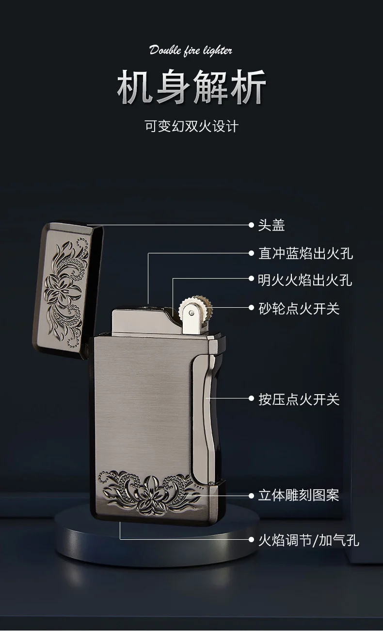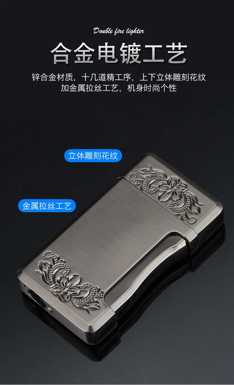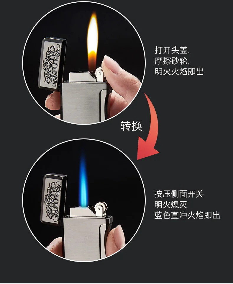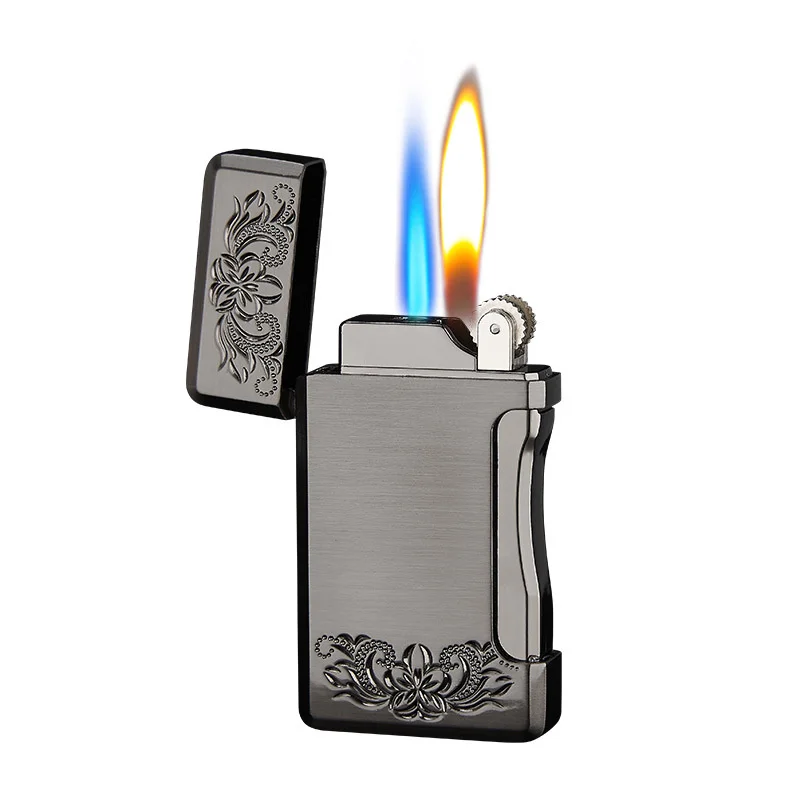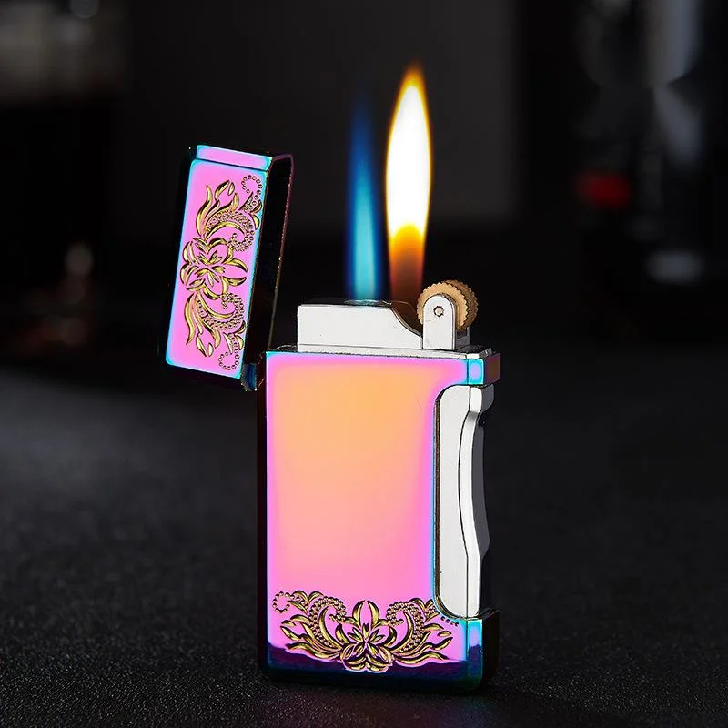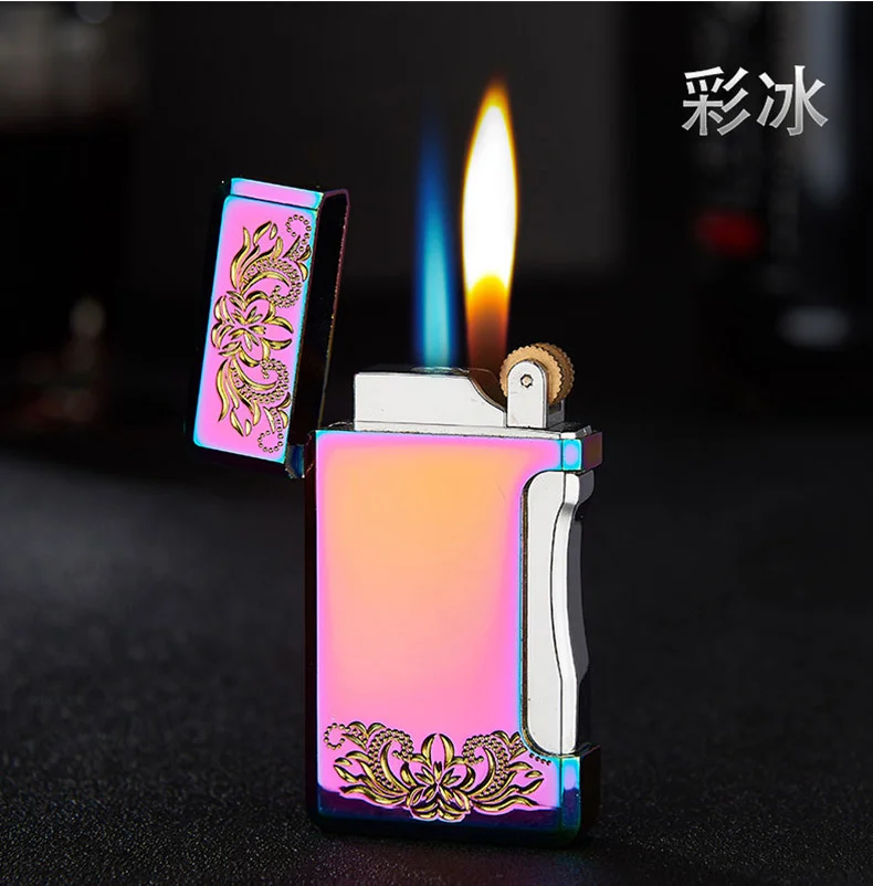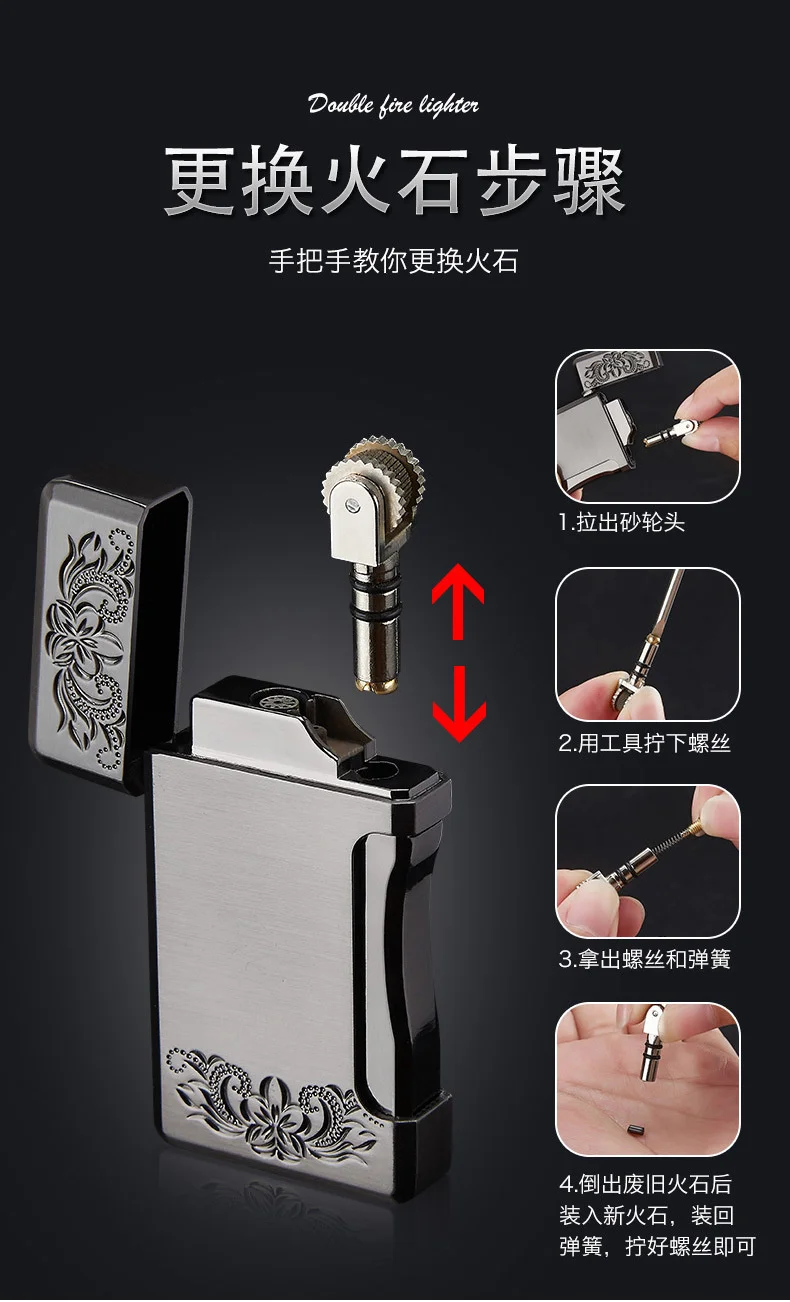 Двойная Зажигалка для резьбы, шлифовальный круг, открывающийся огонь, боковое давление, прямая Пробивка, Бутановая газовая зажигалка, индивидуальная креативная