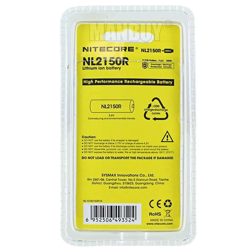 Nitecore NL2150R 21700 5000 мАч 3,6 В Защищенный Литий-ионный кнопочный перезаряжаемый аккумулятор встроенный телефон порт зарядки Бесплатная доставка