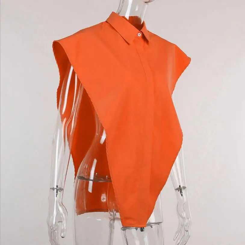 Женская Асимметричная рубашка на пуговицах, белая блузка без рукаво...