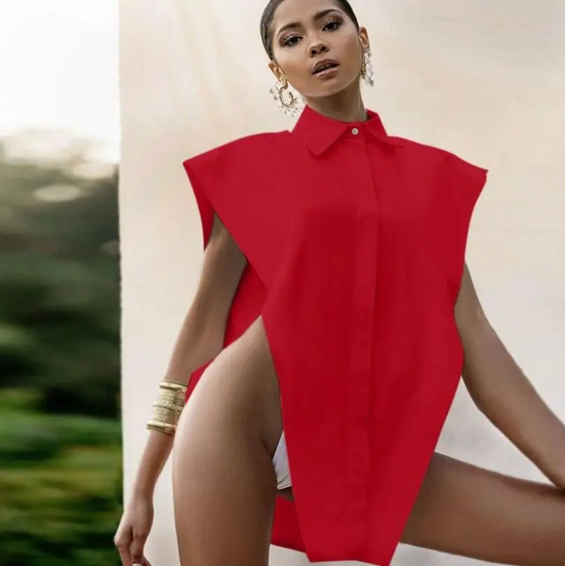 Необычная Сексуальная женская рубашка с пуговицами, без рукавов, с ...