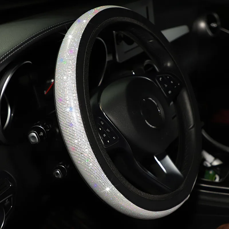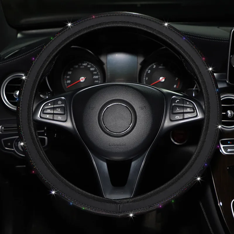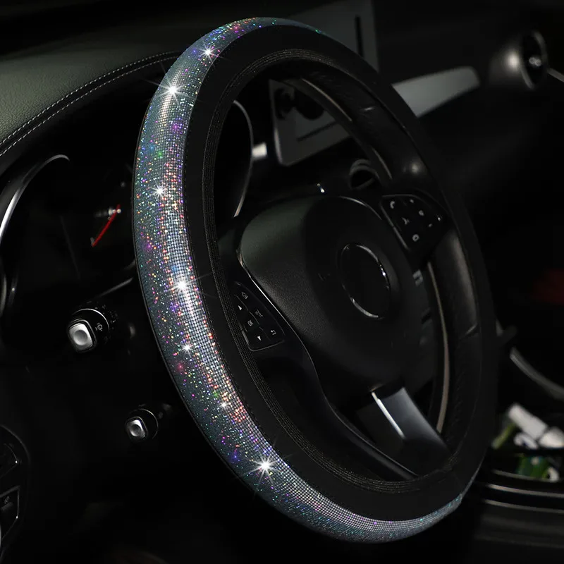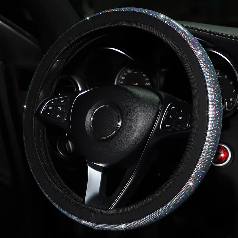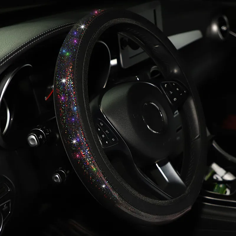 Универсальный мягкий чехол для руля автомобиля 37-38 см с разноцветными бриллиантами и радужными блестками защитный чехол аксессуары для интерьера автомобильный Стайлинг