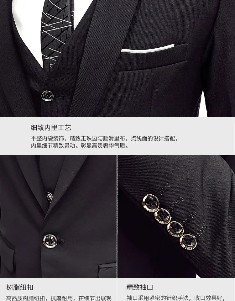 Мужской костюм-тройка, корейские деловые облегающие и красивые комплекты
