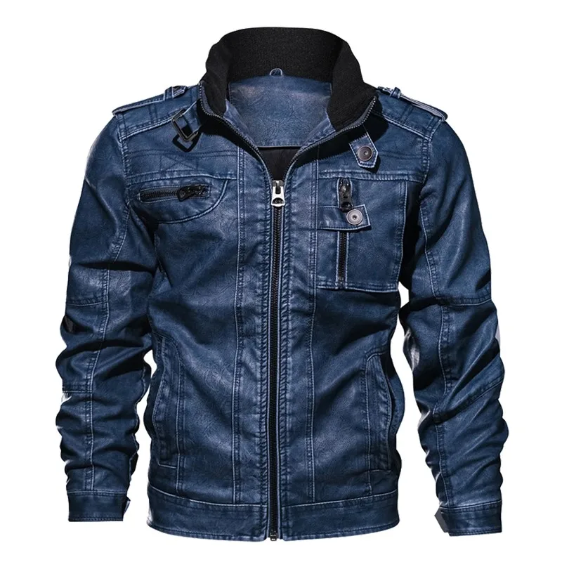 Мужская модная куртка с воротником-стойкой, синяя тонкая блуза на молнии размера плюс, новинка 2021, весенне-осенняя уличная одежда в стиле ретро, S-7XL