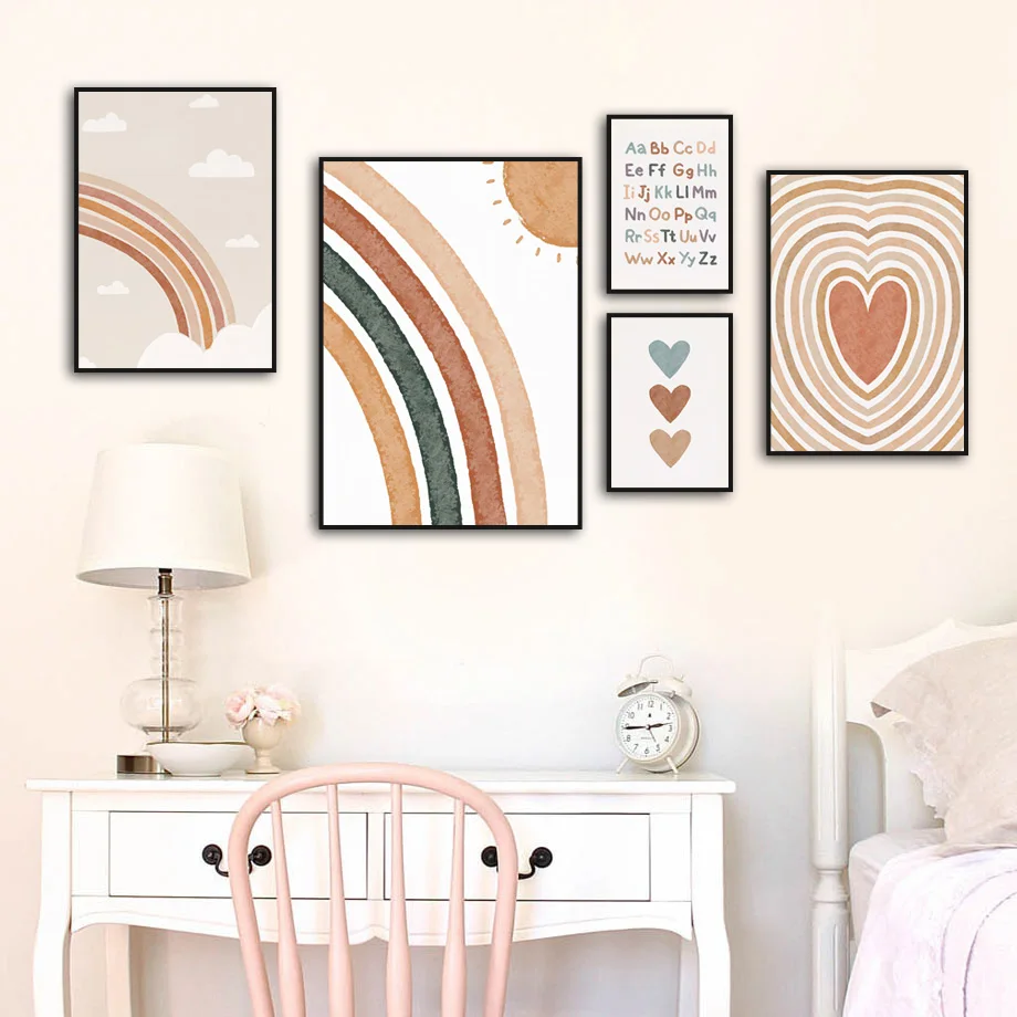Мультяшная лама Гора Радуга алфавит любовь детская стена Художественная печать холст картина скандинавский постер декор картины для гостиной