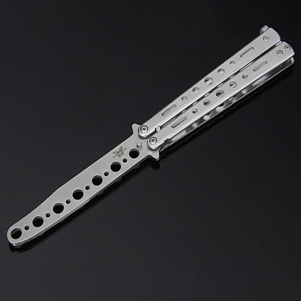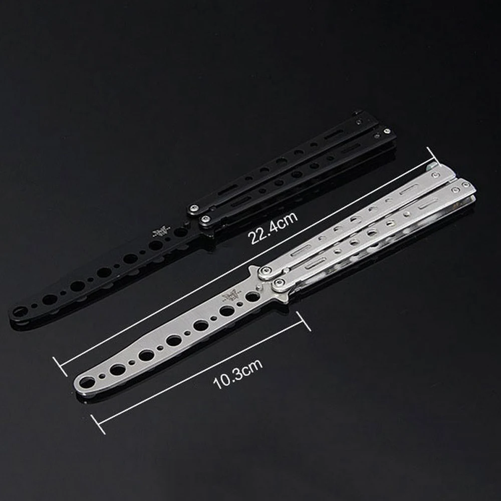 Легкий и практичный: нож-бабочка из нержавеющей стали имеет хороший баланс веса, центр тяжести гарантирует, что он может быть перевернут гладко, складной дизайн удобен и практичен, и его можно носить с собой.
