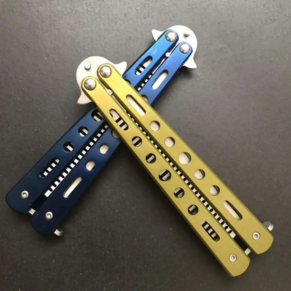 Нож-бабочка для начинающих с шестью отверстиями, тренировочный нож-бабочка, нож-бабочка из стали, нож-бабочка с окантовкой, 1 шт.