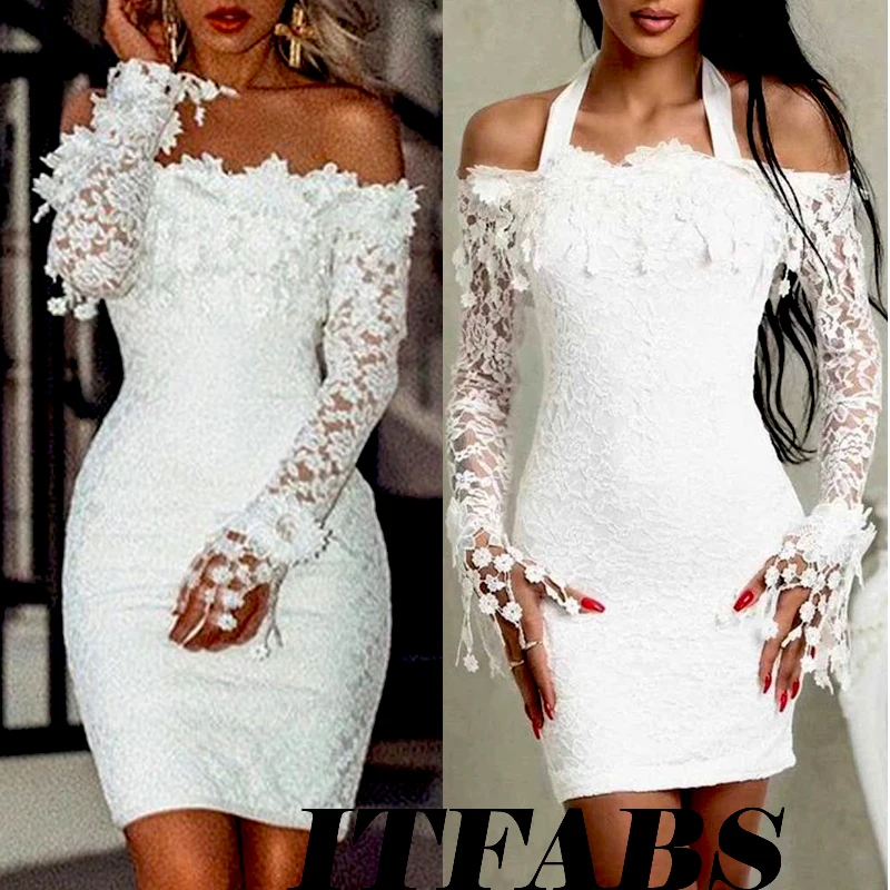 2021 Сексуальное Белое Кружевное платье с длинным рукавом, женское облегающее платье с открытыми плечами, кружевная Свадебная вечеринка, Клубная одежда, вечернее короткое мини-платье