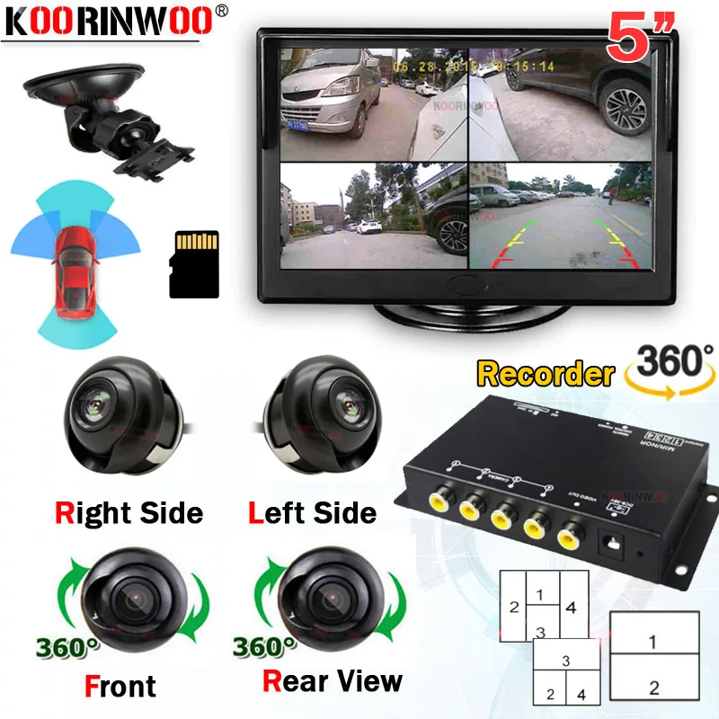 Интеллектуальная система Koorinwoo для мониторинга автомобилей, 4-канальный видеорегистратор 360 дюйма, раздельная камера с боковым обзором, аксессуары для передней парковки