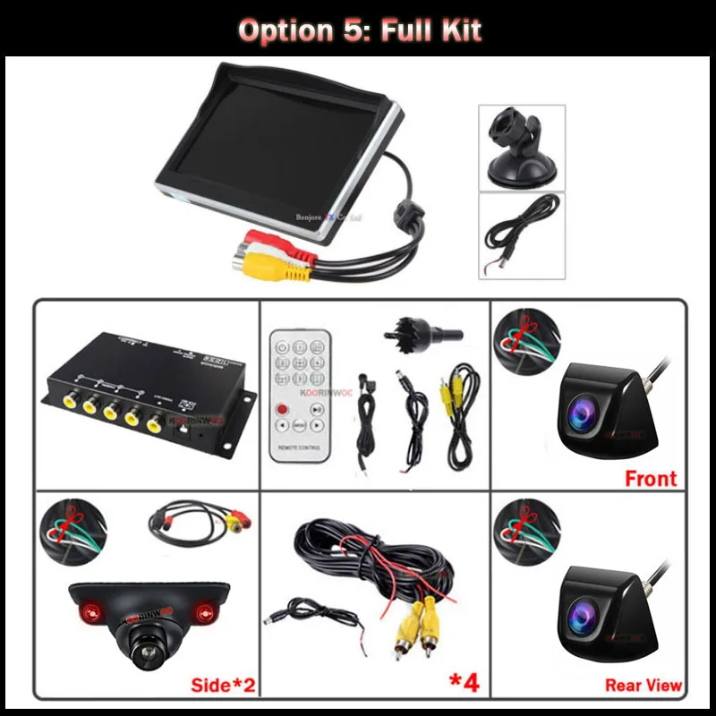 Автомобильная записывающая камера Koorinwoo Switch 360, видеорегистратор с разрезом, 4 широкоугольными камерами, левый и правый угол, вид спереди и сзади, видеорегистратор для автомагнитолы