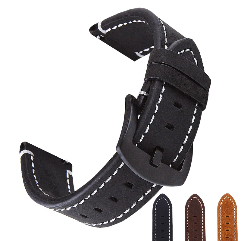 Ремешок из натуральной кожи для наручных часов, черный металлически...