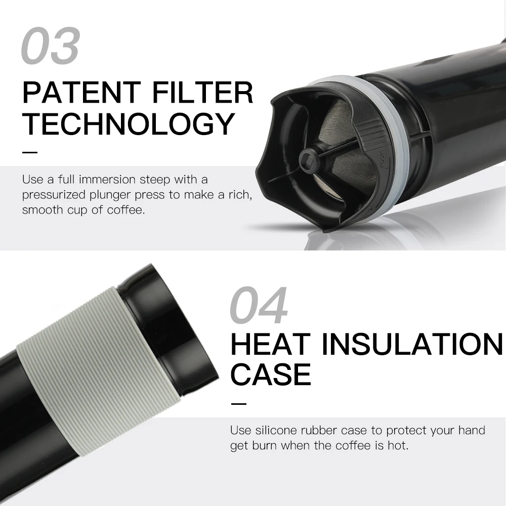 3 ~ 4 минуты время приготовления пива дает вам свободу варить в любое время, в любом месте, с вашим любимым кофе. Портативный французский пресс для путешествий, идеально подходит для занятий спортом, работы, путешествий и активного кофе.