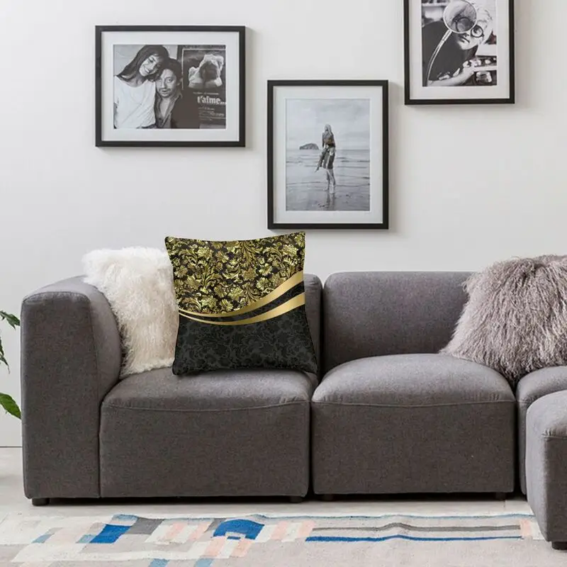 Черно-золотые Цветочные амортизаторы, наволочка 40x40 см, домашний декор, Роскошный чехол для подушки с геометрическим рисунком для гостиной