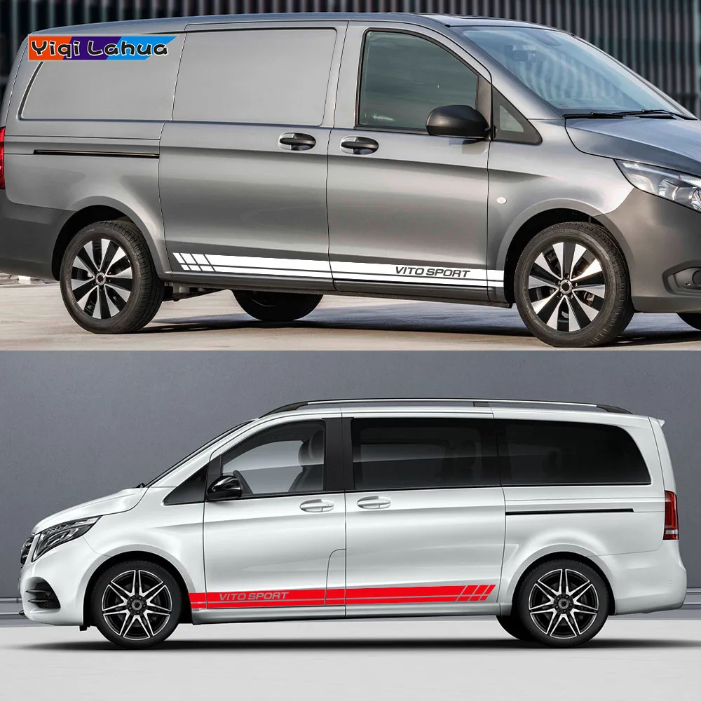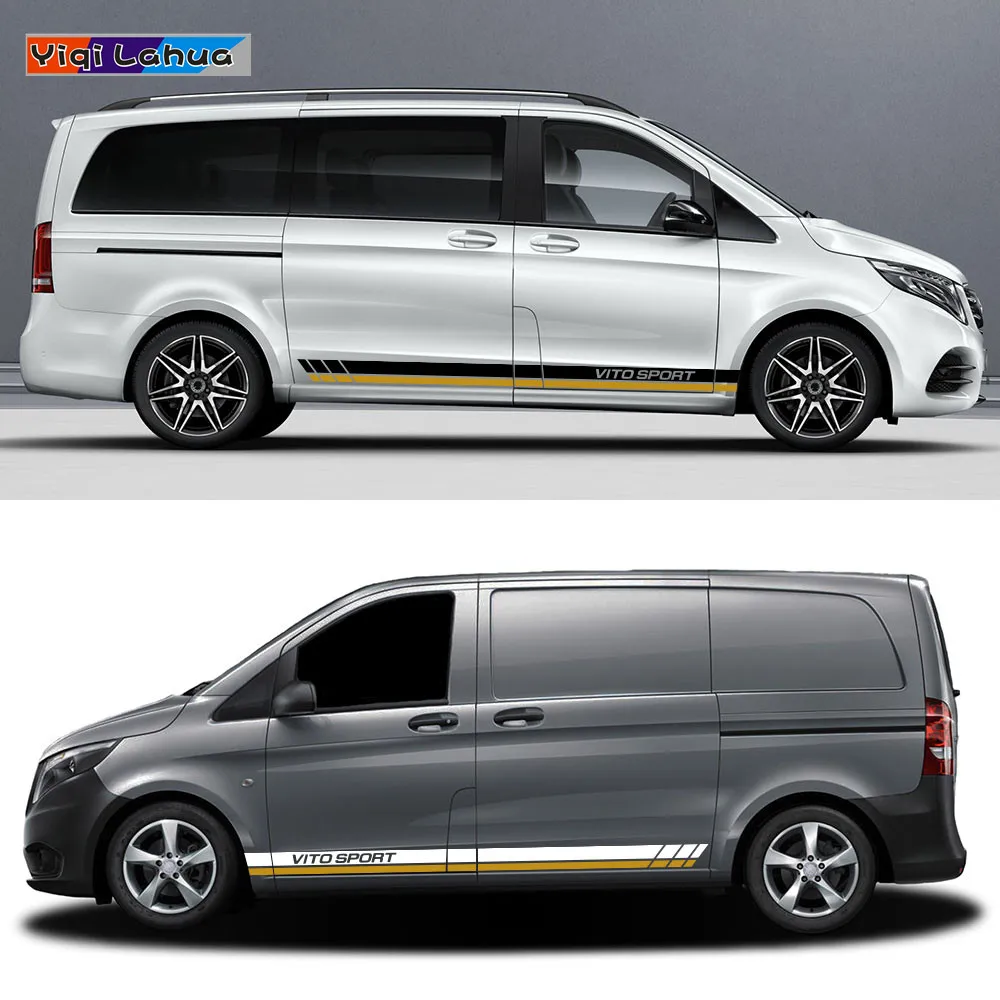 Наклейки для декора кузова автомобиля 2 шт.лот, виниловые наклейки, графические полосы кузова фургона для Mercedes Benz Vito Viano V Class W447, аксессуары