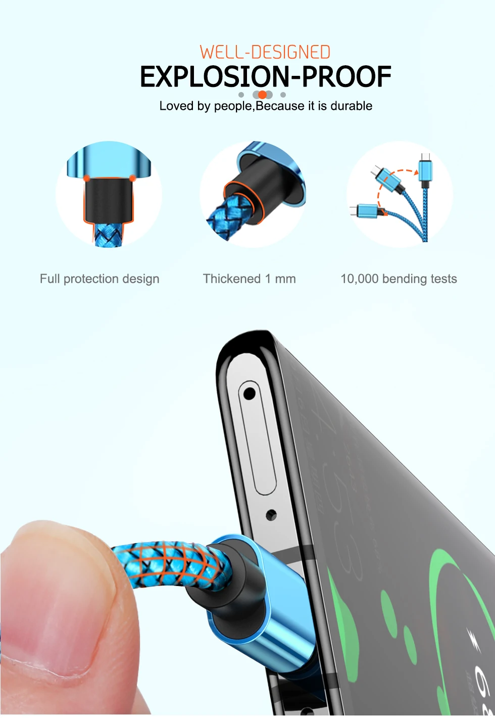 Кабель USB Type-C для Samsung S20, S10, A51, Xiaomi, Huawei P30 Pro, 3A, шнур для быстрой зарядки, USB Type-C, шнур для передачи данных, длиной 3 м